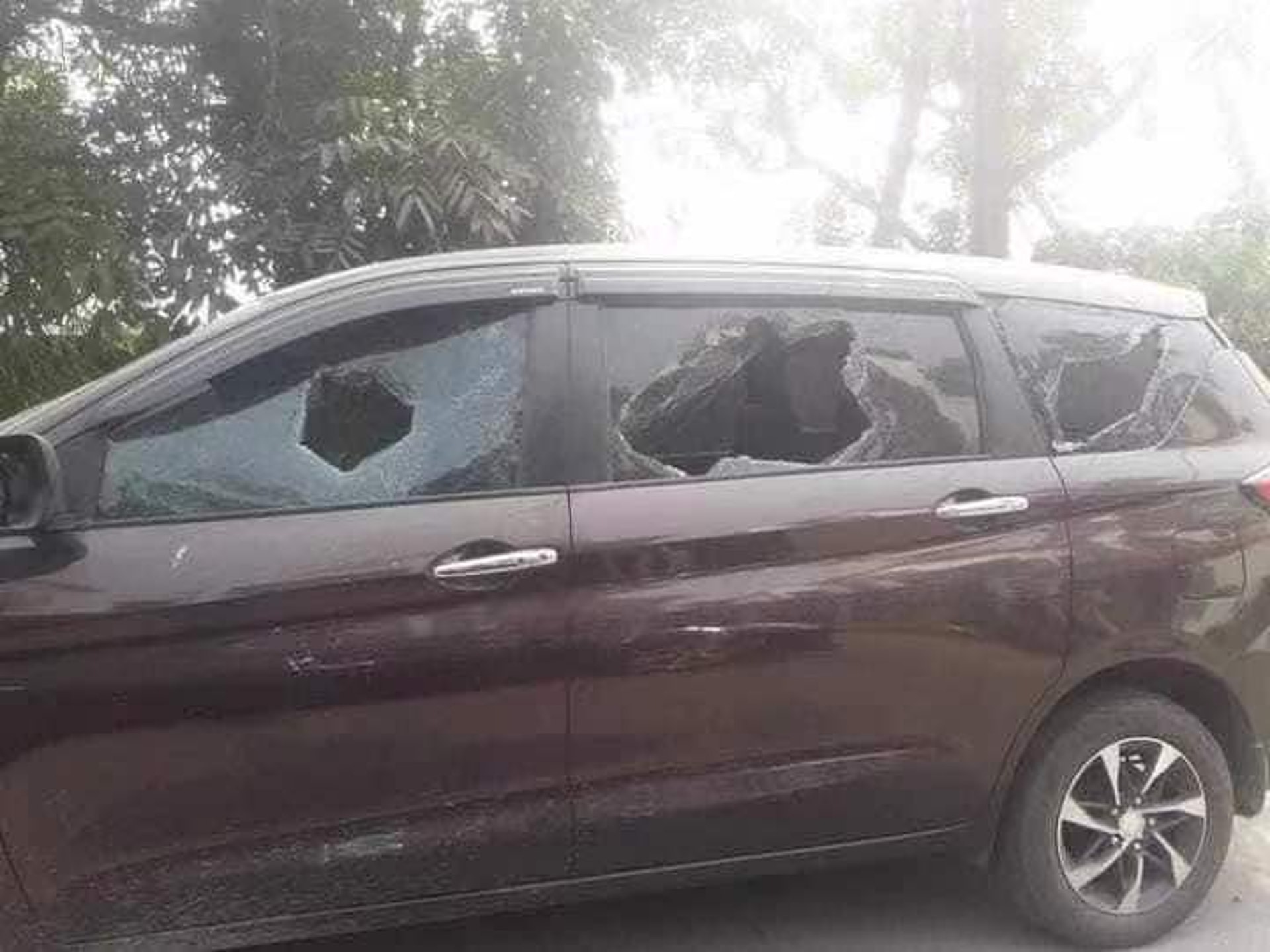 ' O6 O' l) i5 t' ]' Z* E. Jos.tvboxnow.com在風波中,部分企業財物被損害,譬如圖中的汽車被砸爛車窗玻璃,幸而並未被焚燬。(中國中央電視台新聞視頻截圖)