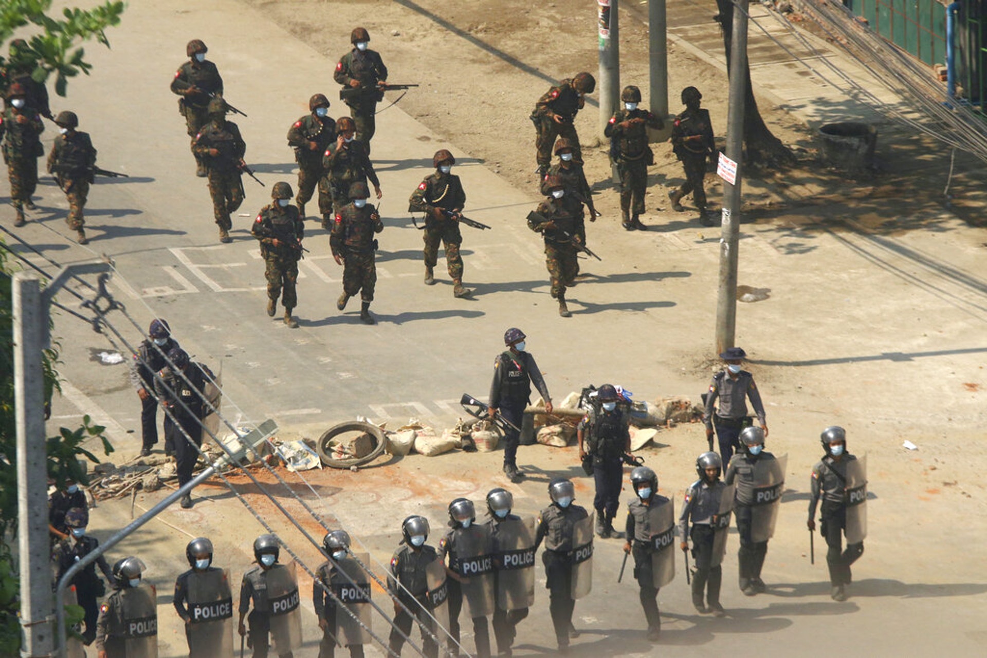 伴隨事態蔓延,緬甸統治軍政府宣布對該國最大城市部分地區實行戒嚴。(AP)tvb now,tvbnow,bttvb4 F' Y3 @; g$ A9 ^7 y! w! E