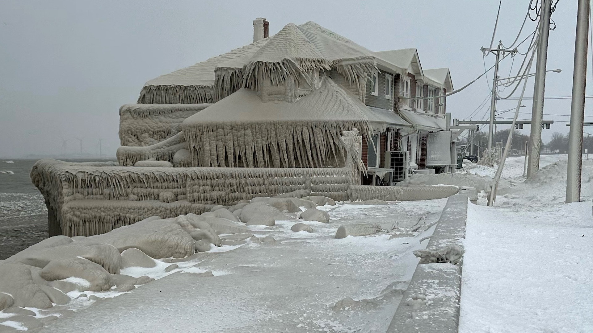 美國正受被稱為「驟強暴風雪」(Bombogenesis )或炸彈氣旋(Bomb cyclone)的風暴侵襲,多地天氣嚴寒。紐約州水牛城 (Buffalo)漢堡鎮(Hamburg)12月24日有一間餐廳被「冰封」,看起來就像美國災難電影《明日之後》(The Day After Tomorrow)的場景。