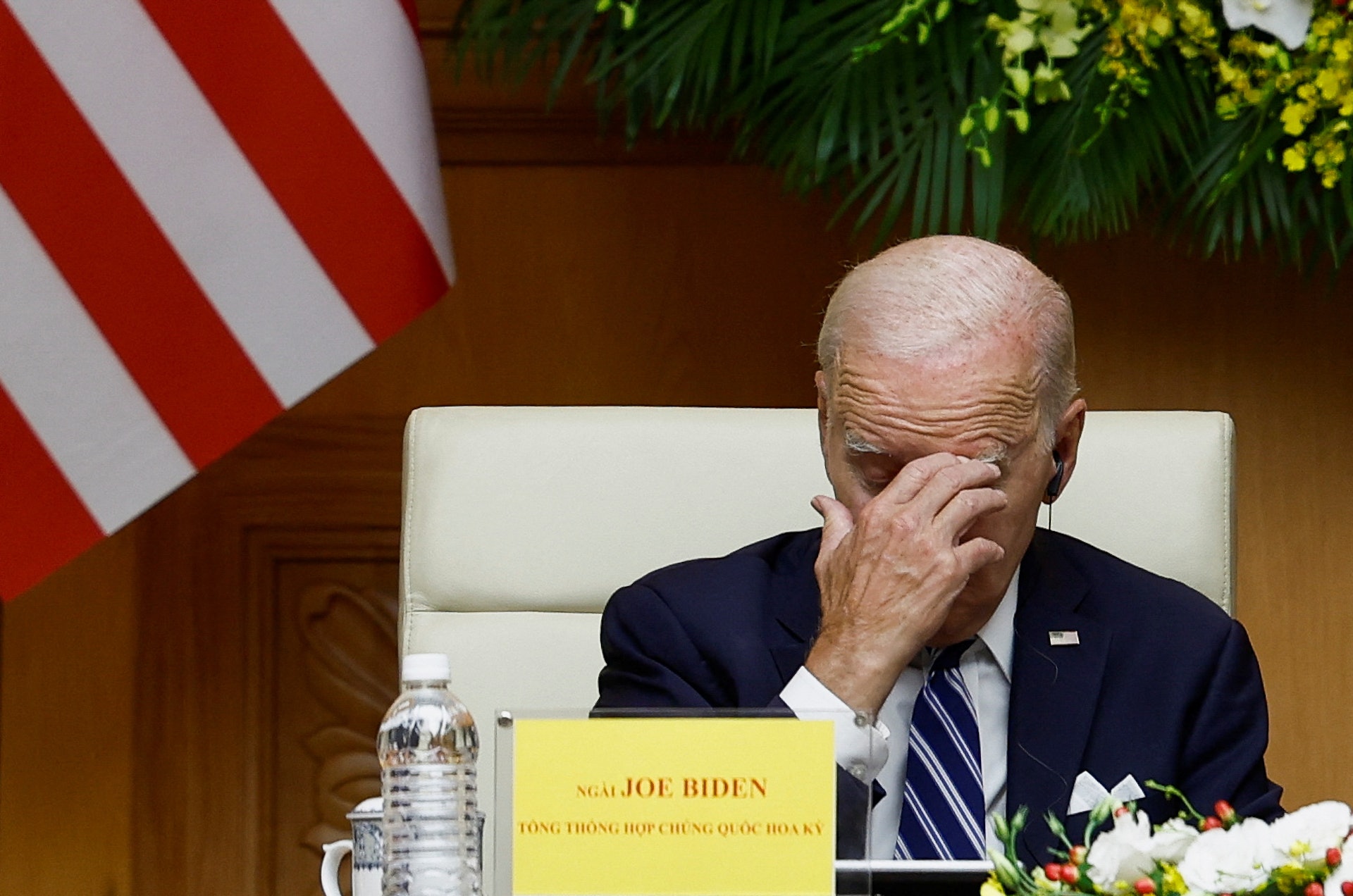 1 ]3 F9 ^3 e; J; d' b2 A4 `TVBNOW 含有熱門話題,最新最快電視,軟體,遊戲,電影,動漫及日常生活及興趣交流等資訊。拜登: 圖為2023年9月11日,美國總統拜登在越南河內與越南總理范明正會面,期間拜登看來疲倦。(Reuters)