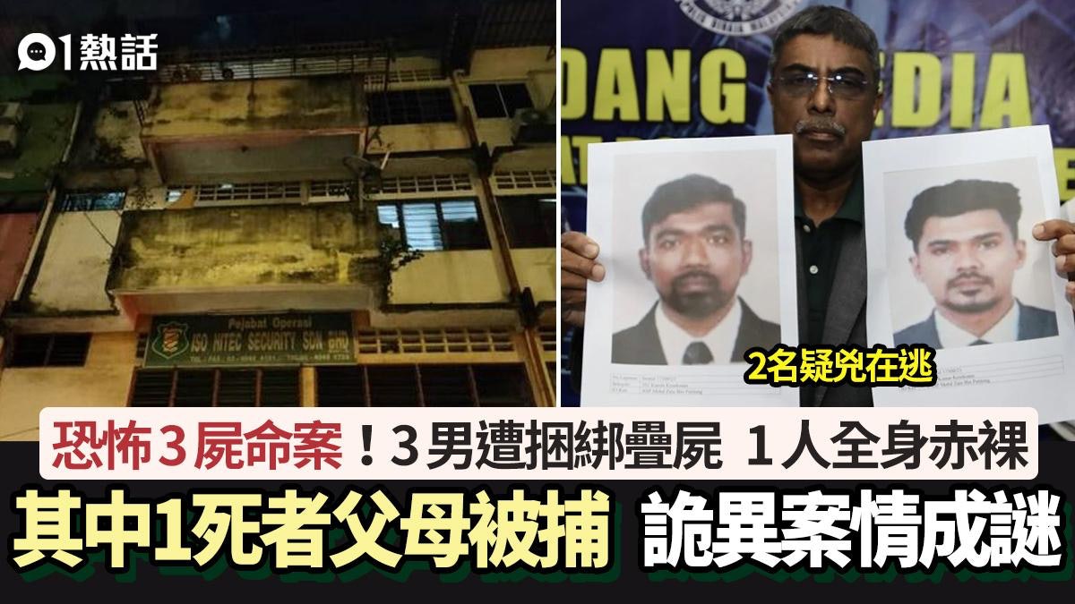 馬來西亞發生恐怖1屋藏3屍命案,警方接獲民眾投訴,指吉隆坡1間店屋(下舖上居)有人吵架擾民,到場驚見有3具男性屍體被捆綁疊在一起,四肢皆被綁起、頭上更套上塑膠袋,當中1具屍體更全身赤裸。警方在場拘捕1對夫婦,他們是店屋的二房東,也是其中1名死者父母。