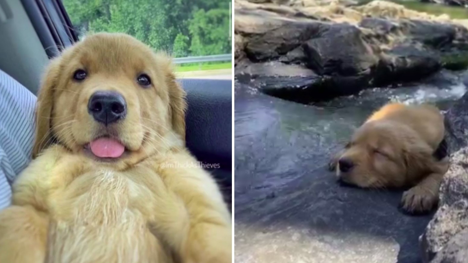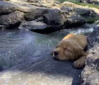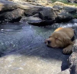» 八周小金毛初體驗大自然 聽溪水催眠熟睡 可愛得心都快要融化了