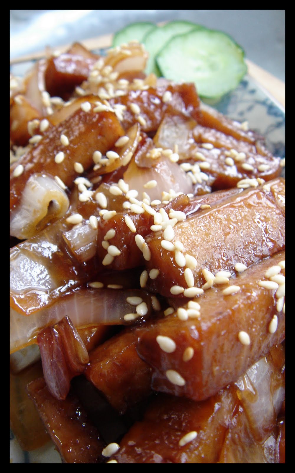 只需要把午餐肉煎熟, 芝麻炒香, 再快速地煮好妈蜜酱料即可!