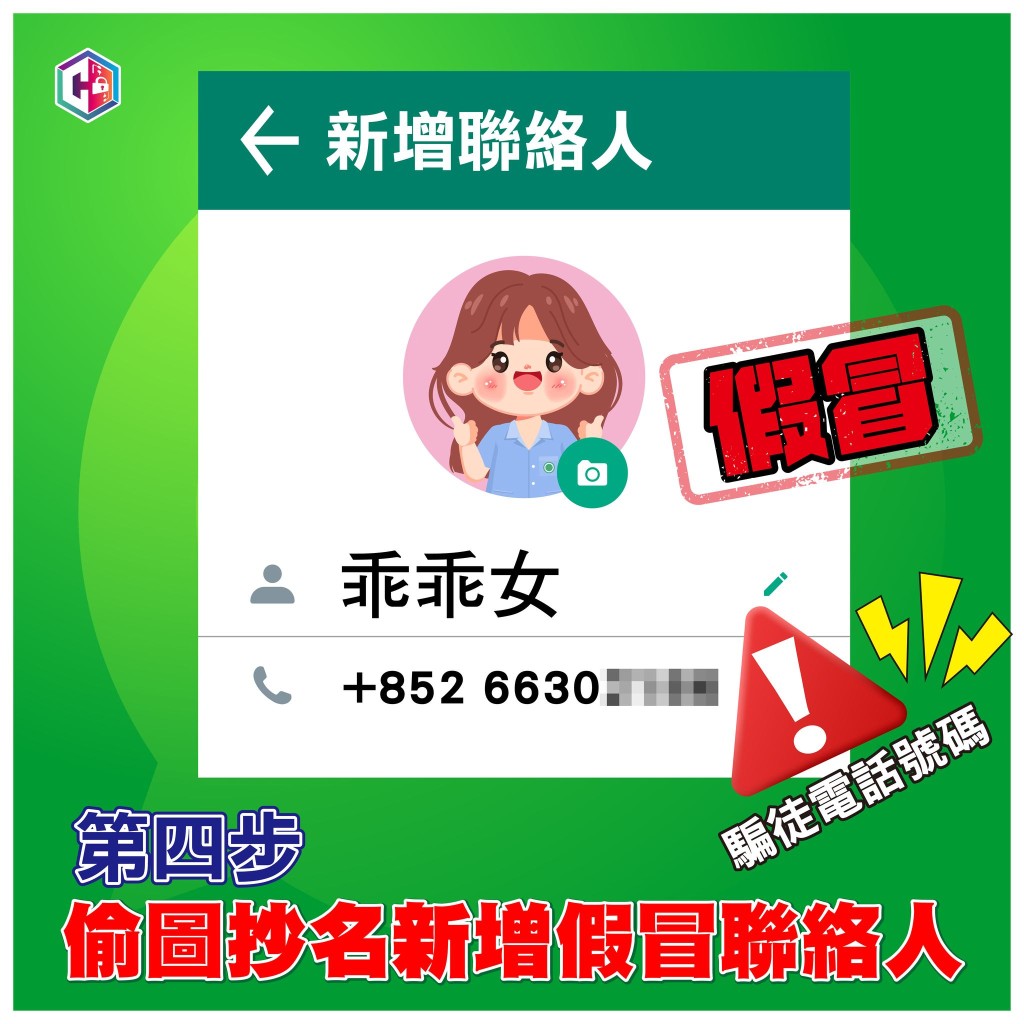 4 ?& ~2 A$ J* C$ e+ _tvb now,tvbnow,bttvb騙徒盜用受害人女兒的頭像及暱稱,在受害人WhatsApp新增假冒的「女兒」聯絡人。