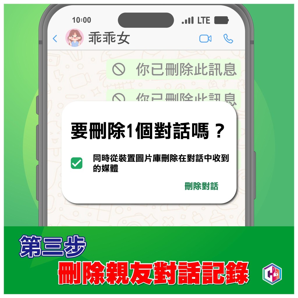 騙徒刪除受害人與其女兒所有對話記錄。/ l& \( d4 n9 `- D/ R