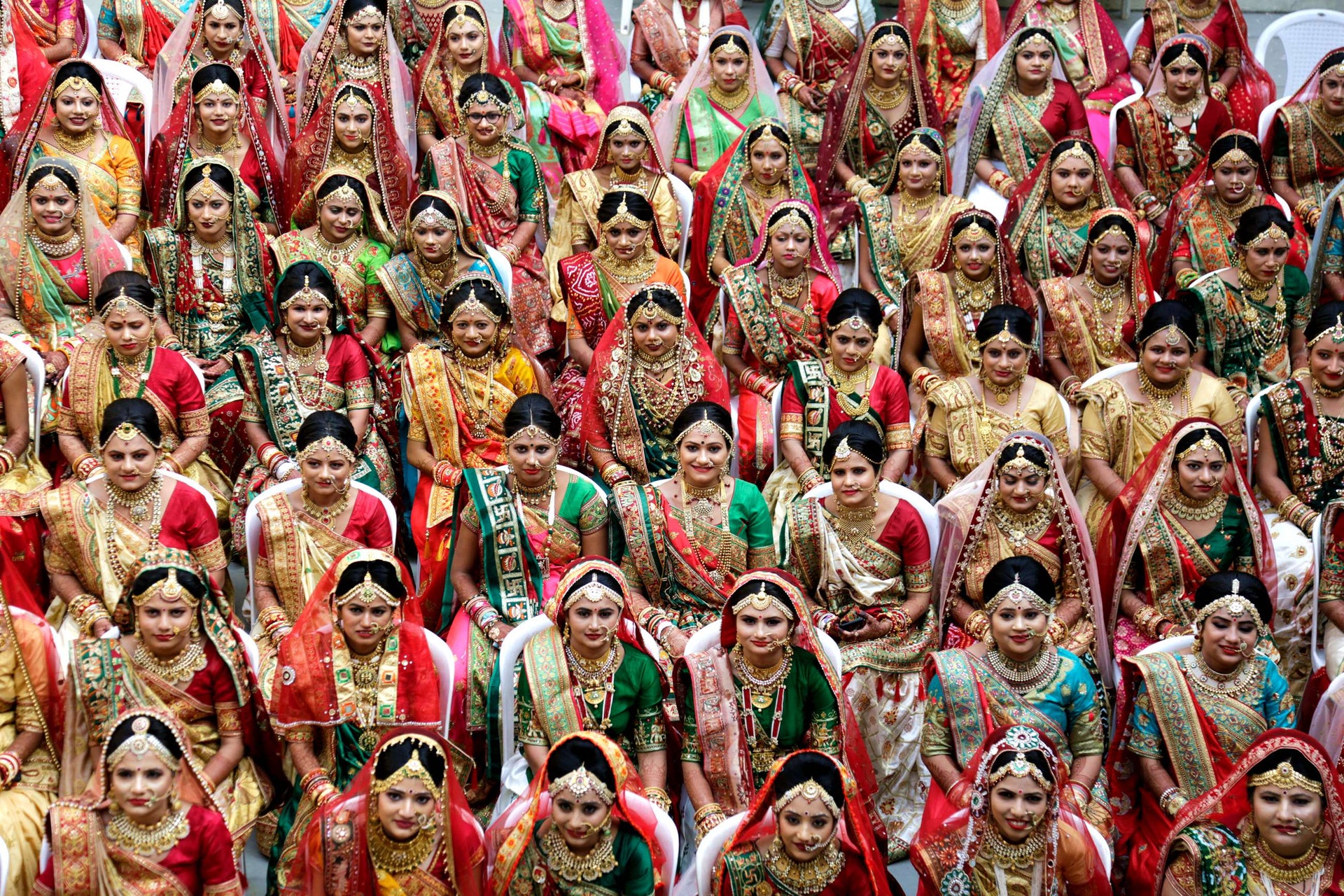 ' [4 a% `3 {/ Y! pos.tvboxnow.com圖為2019年12月21日,在印度古吉拉特邦蘇拉特縣縣府所在地蘇拉特,新娘們坐在一起參加集體婚禮。一百多對新人在集體婚禮上喜結連理 。在印度,婚禮是很昂貴的事情,新娘的家人傳統上要付給新郎一大筆現金和禮物作為嫁妝。(AP)tvb now,tvbnow,bttvb8 X( A- d3 R% S* l4 u& \