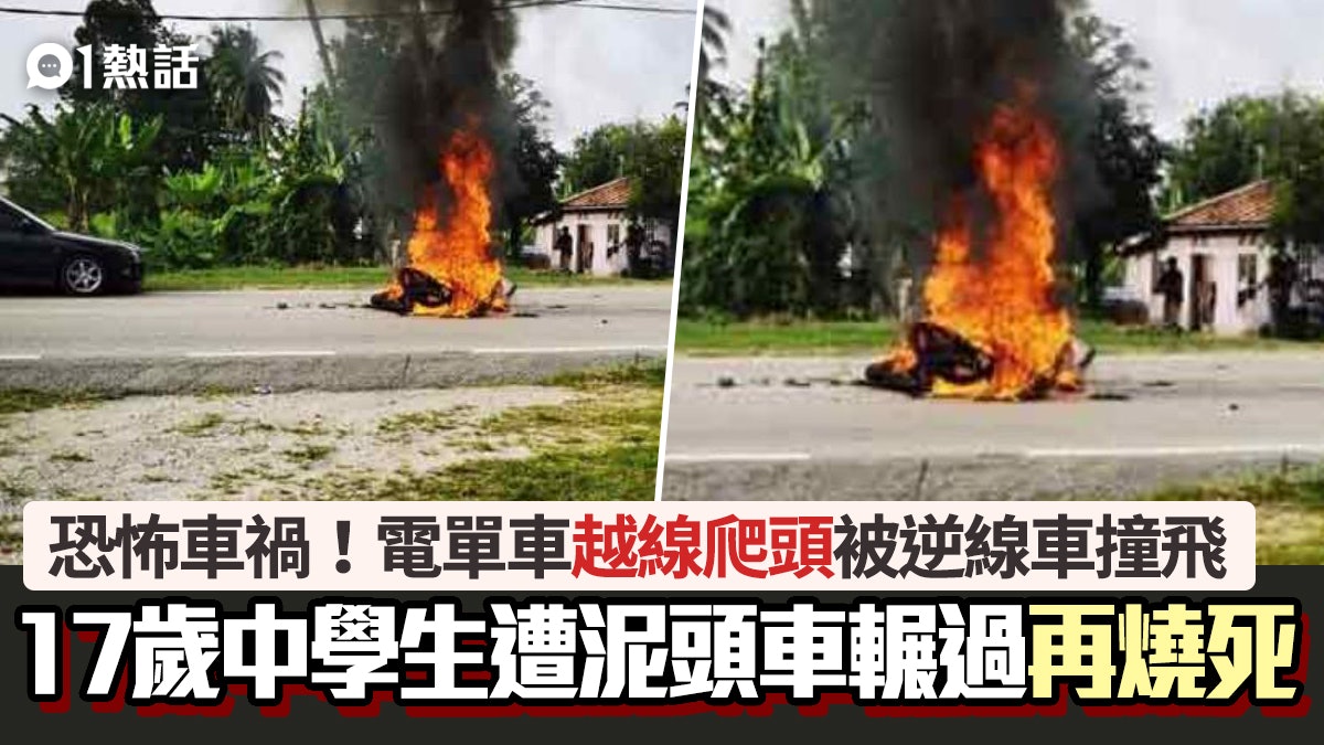 0 _" S7 k8 V9 \6 \tvb now,tvbnow,bttvb安全駕駛很重要,尤其是「皮包鐵」的電單車司機,1個危險動作恐隨時喪命!馬來西亞日前發生恐怖車禍,1名就讀中學的17歲男生駕駛電單車想超越前方一架泥頭車時,結果被1輛反方向行駛的車輛迎面撞飛,再遭泥頭車碾過,最終慘被起火的電單車火焰活活燒死。公仔箱論壇4 U2 o3 [. |; b0 Q, w. G