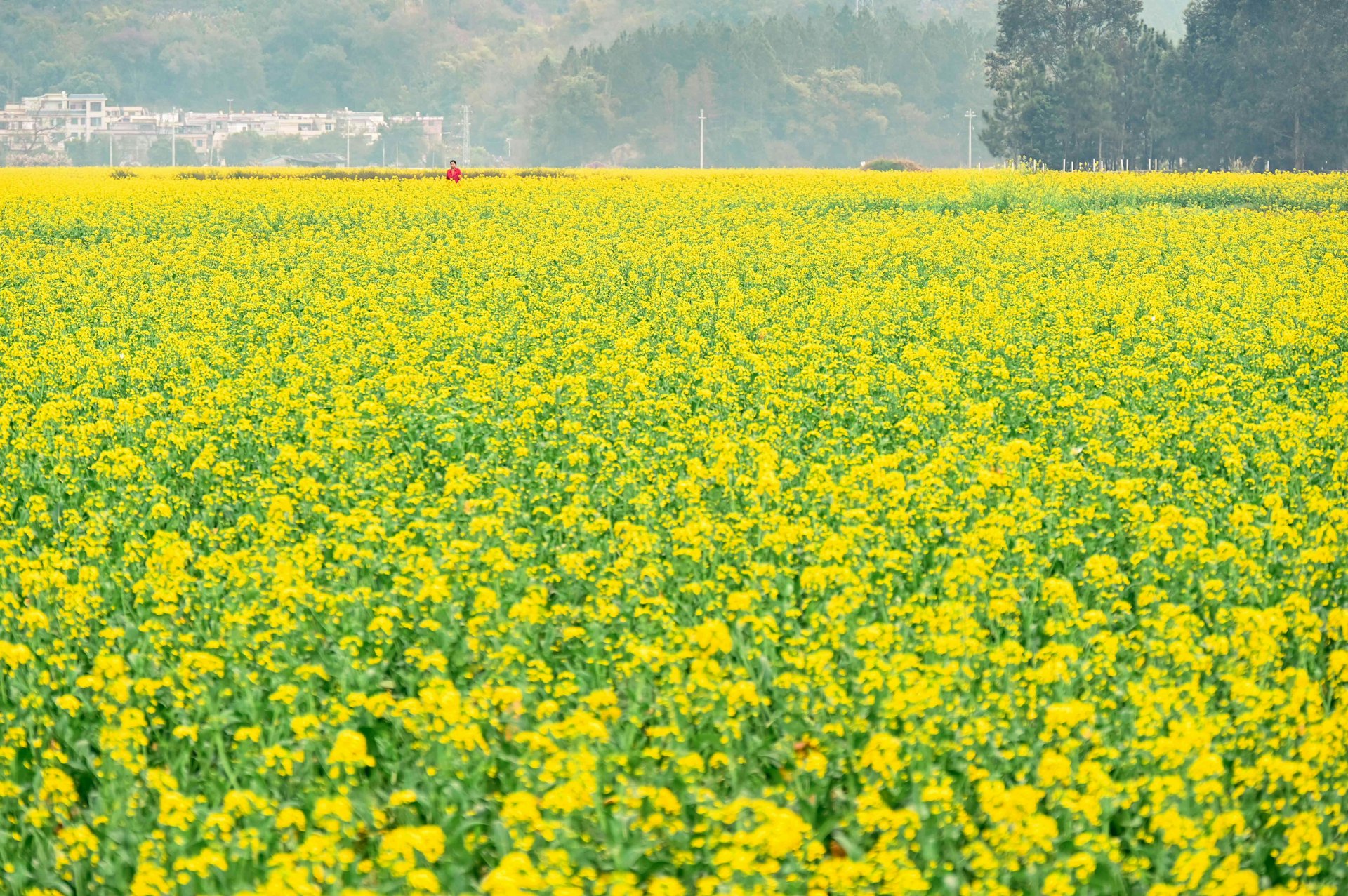 ) r/ O( \& J1 B( I「白錦無紋香爛漫,玉樹瓊葩堆雪。」白色的黃,黃色的蕊,忙碌的蝴蝶,浮動的清香。梨花似雪般掛在枝頭,層層疊疊氤氳半空。斑駁的陽光灑下,清風吹過,落下片片芳華。西江鎮高山茶田圍村梨花園、高山龍尾村梨花園,星子鎮潭嶺、潭源村,龍坪鎮孔圍圍子村、卡房等地都有梨花盛景可觀。花開滿地黃,長天曠野連。在連州各菜心基地,十萬畝菜心花惆然怒放,一朵朵小黃花在曠野鋪成出一片壯美的金色花海,裝飾著煙雨綿綿、春意融融的鄉村景象。在連州鎮沙坊村、豐陽鎮江西沖村、西岸鎮東村等地可以走入這幅鄉野春景圖。連州是遠近聞名的菜心種植基地,2023年菜心種植規模達13萬畝。2 c( z- |' Q, t) B