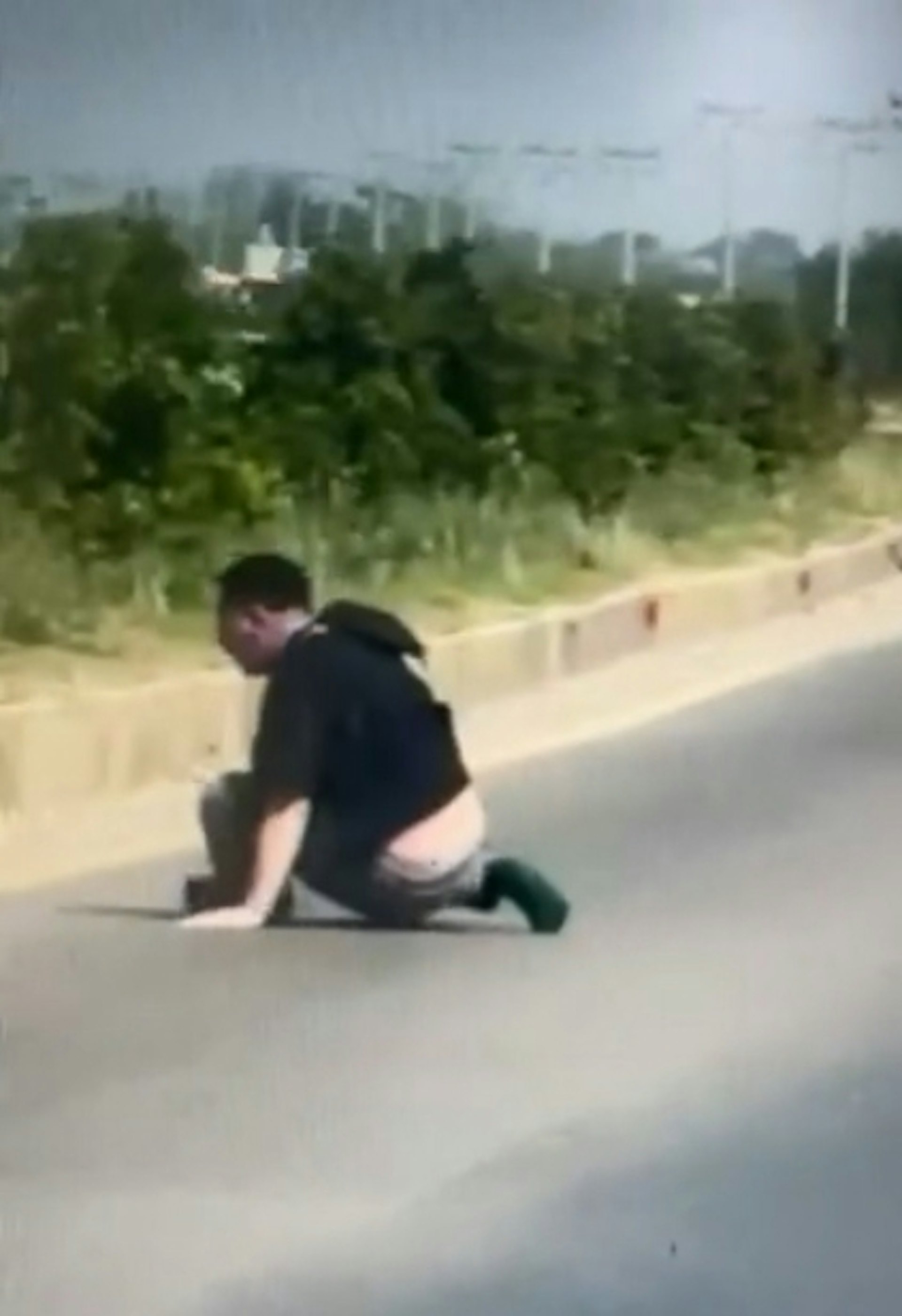 中國男子遭接機人員綁架,途中果斷跳車脫險,影片顯示過程極為驚險。(《柬中時報》)