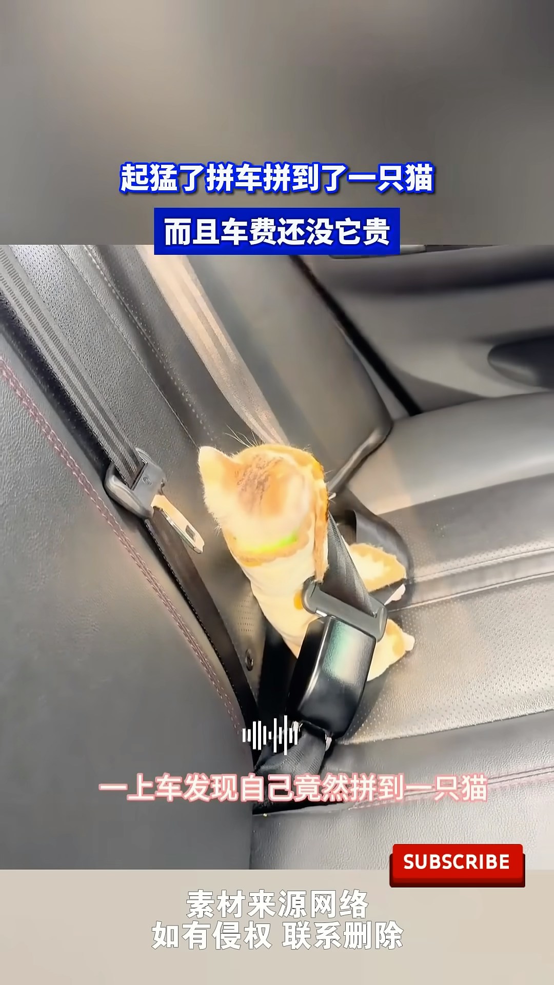 一名女子趕上班就用APP叫車共乘,結果發現自己拼車到一隻好可愛的橘貓。(youtube)