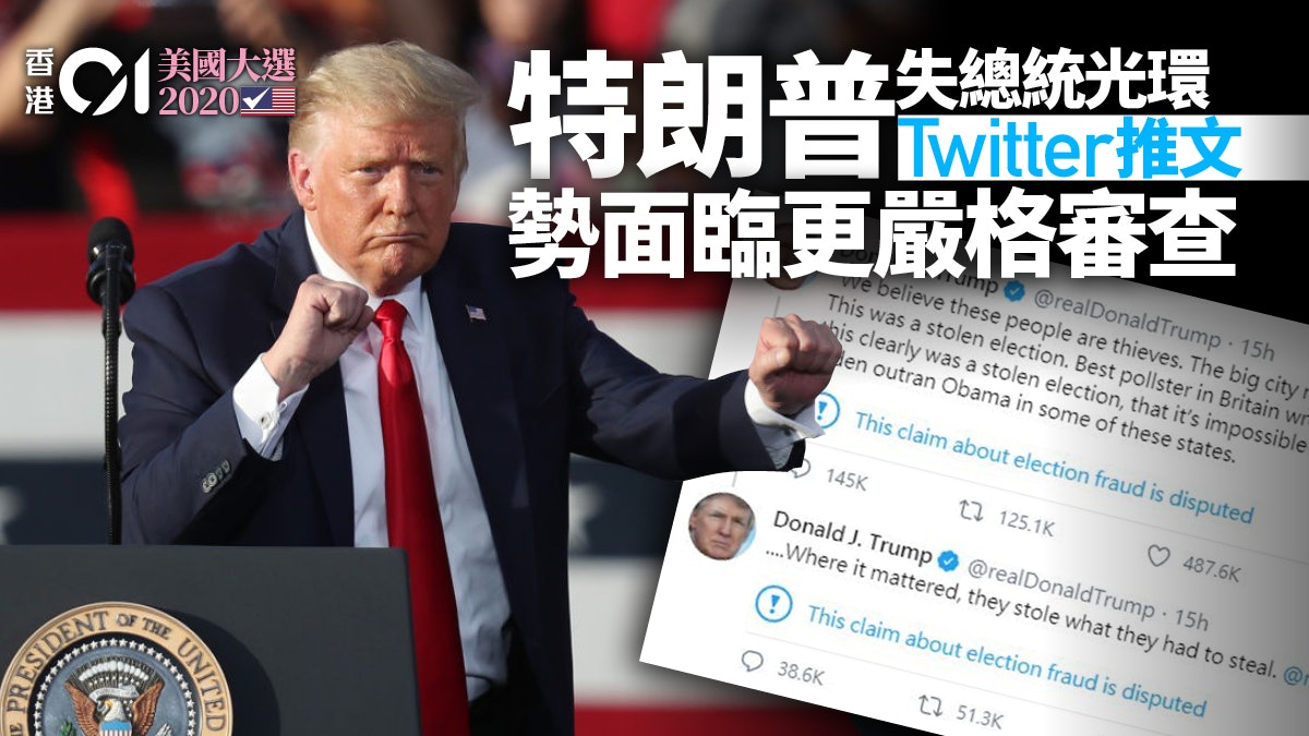 4 m+ s7 O" e( f1 J( r特朗普近日不停就選舉結果在Twitter發言,包括「STOP THE COUNT」(停止點票),部分被加上標示甚至屏蔽(realDonaldTrump/Twitter擷圖)
