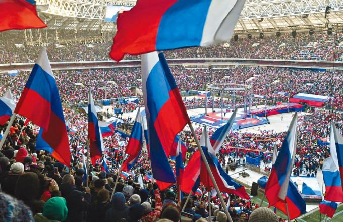 9 @4 s/ m( f, f! h' U莫斯科昨日舉辦大型音樂會為普京造勢。/ r C3 s7 d1 G: |% q; v2 T( e
