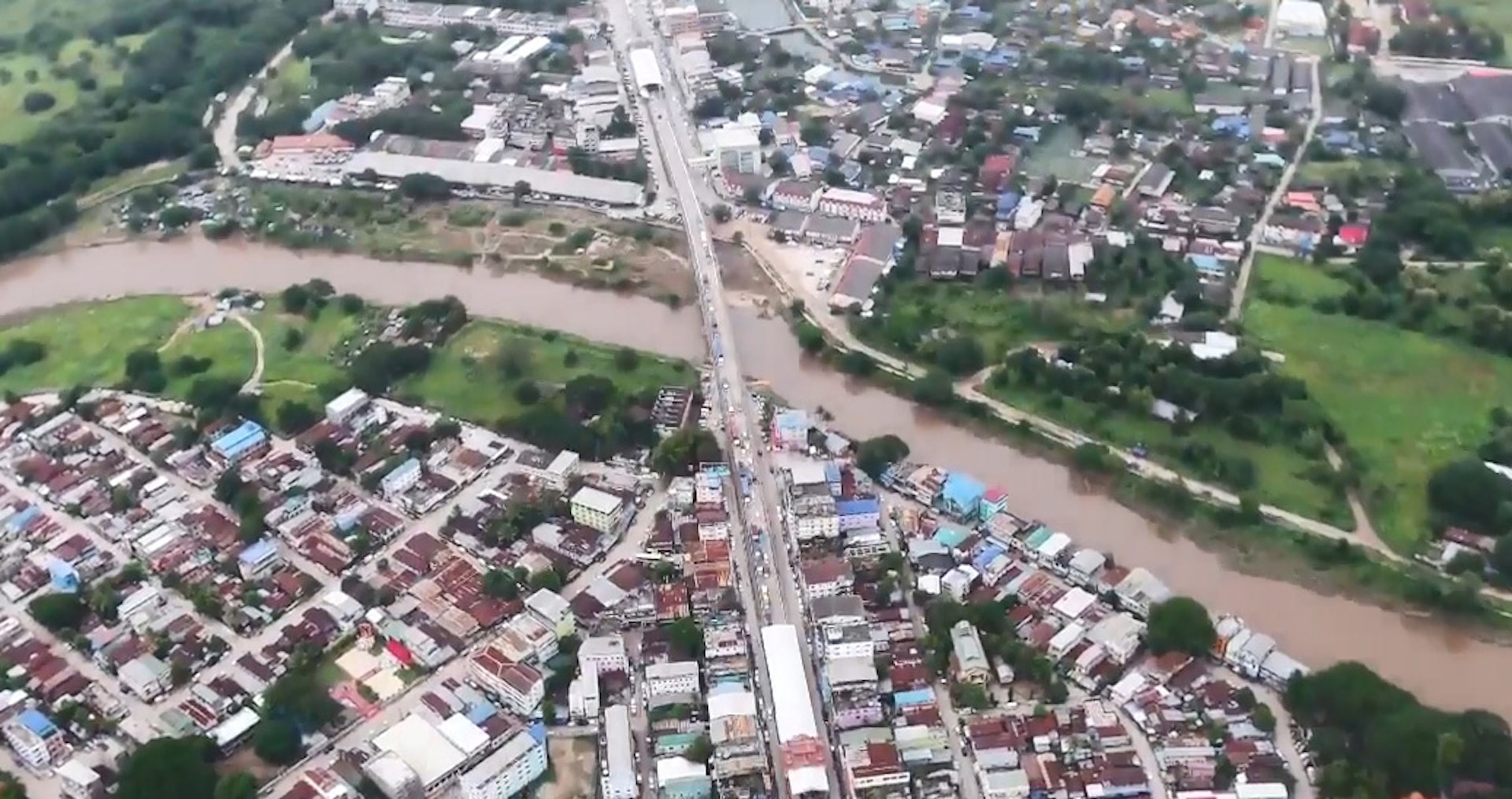 ) ~, M2 c4 _9 O6 j泰國與緬甸以湄公河為界,圖中上方為泰國湄索(Mae Sot),下方為緬甸克倫邦苗瓦迪(Myawaddy)。(亞太國際宣傳片)os.tvboxnow.com: m3 {0 i# }( R& I' z! _) j5 G