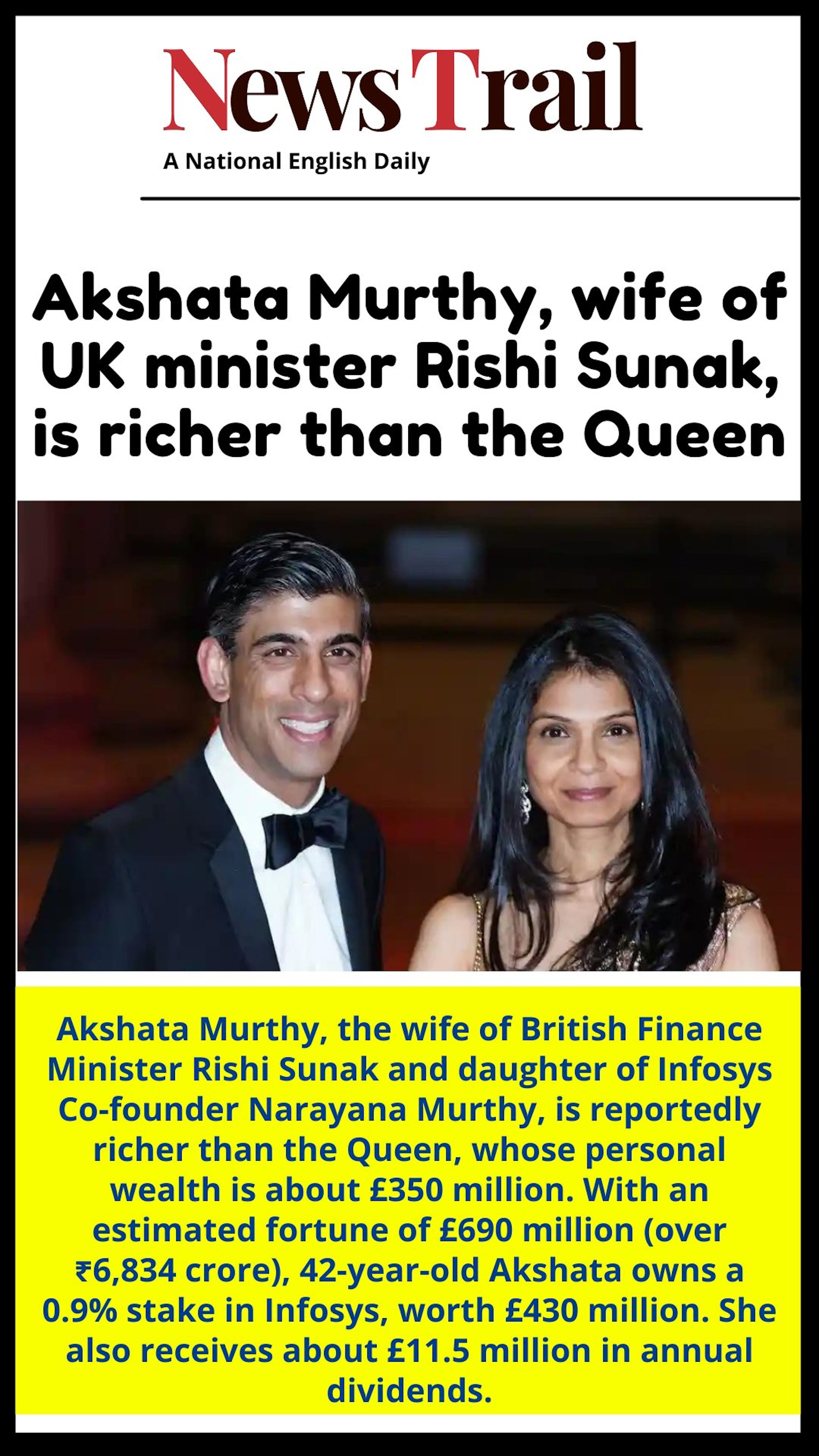 42歲的阿克莎塔,出身於印度的一個富豪家庭。5億英鎊的個人資產,不僅讓他們夫婦登上了《星期日泰晤士報》的富豪榜,更讓她的身價超過了已故的女王伊麗莎白二世,是現任查爾斯國王的兩倍有餘。她的財富,正如美媒評論的,讓丈夫「登上了政治體制的頂峰」,也讓這位新任首相的崛起之路「近乎脫軌」。無論是堪稱奢侈的個人生活,還是不需要向英國納稅的身份,都將這位錦衣玉食的豪門千金,推到了政治爭議的風口浪尖。