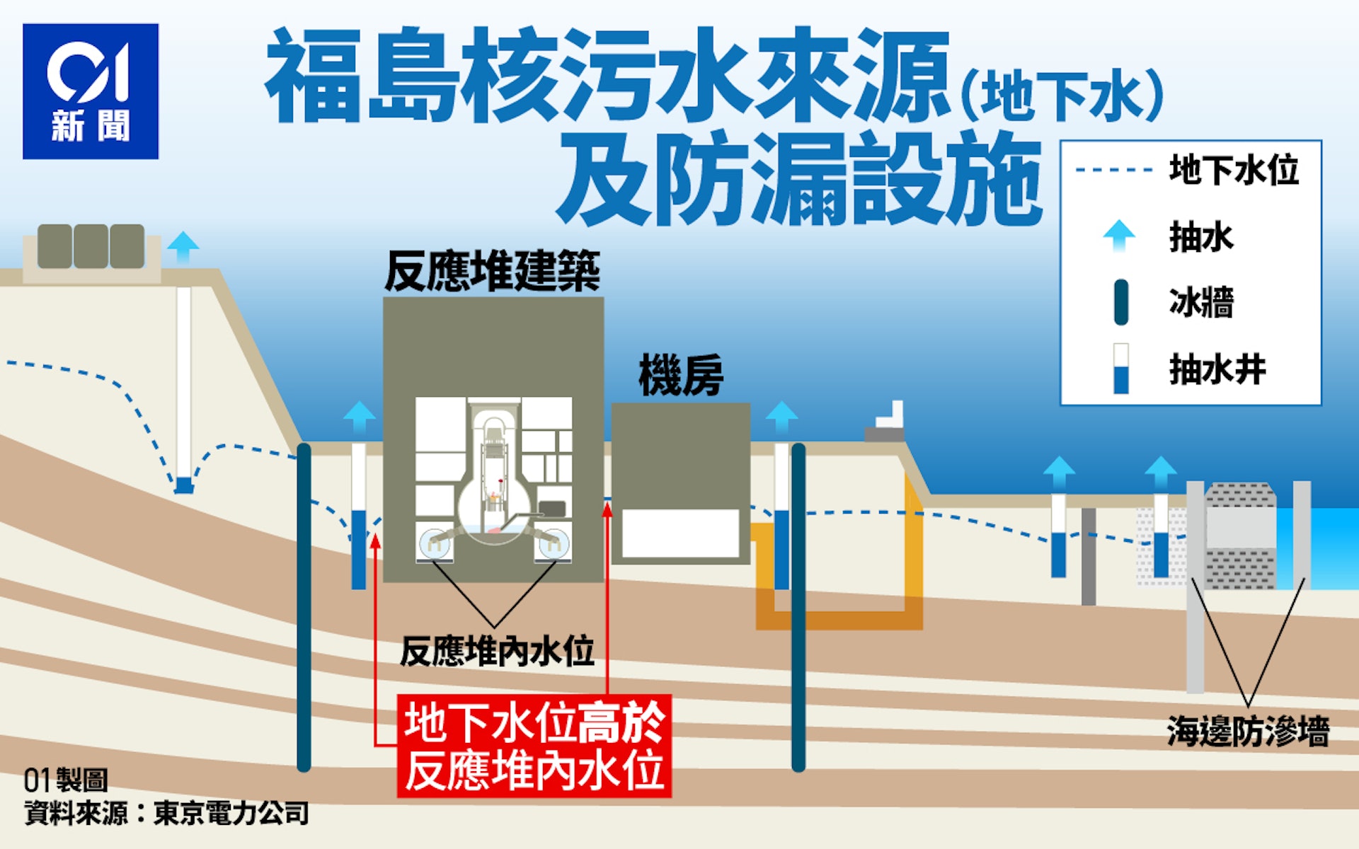 福島第一核電站在2011年311大地震中遭受海嘯侵襲,6座反應爐中有3座發生爐芯熔毀,反應堆建築物的地下室也在地震中損壞、破裂,且地下水疑似已經透過裂縫流入當中。熔解的核燃料碎片需要長時間持續注入冷水降溫,但這並不是產生如此大量的核污染水的唯一原因。
