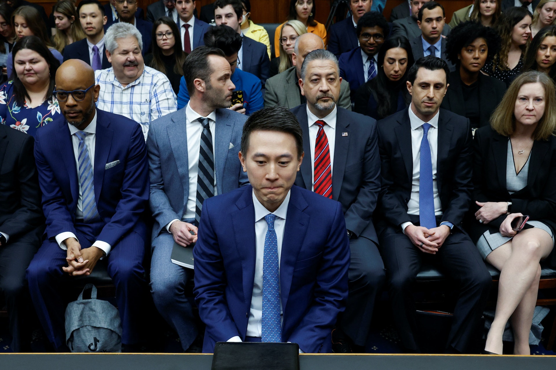 圖為TikTok行政總裁周受資3月23日出席美國眾議院能源和商務委員會聽證會。(Reuters)
