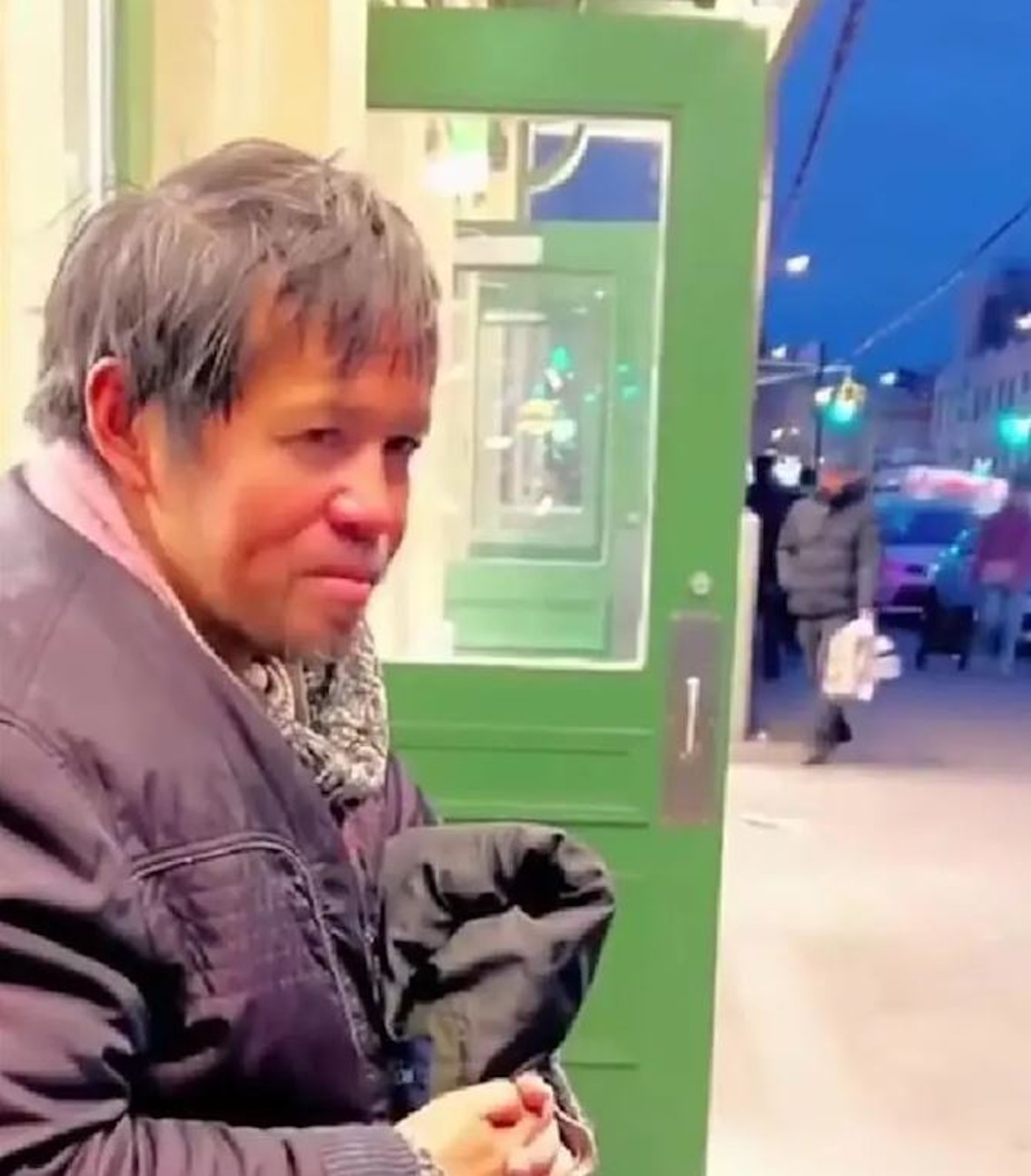 這段故事源於一名在美華人博主上周上傳的多段影片。這名博主講述自己在美國紐約街頭上發現一名頭髮雜亂、衣衫襤褸、牙齒脫落的流浪漢,躺在髒兮兮的破被子裡避寒,加上他是黑頭發黃皮膚,因此上前搭話。