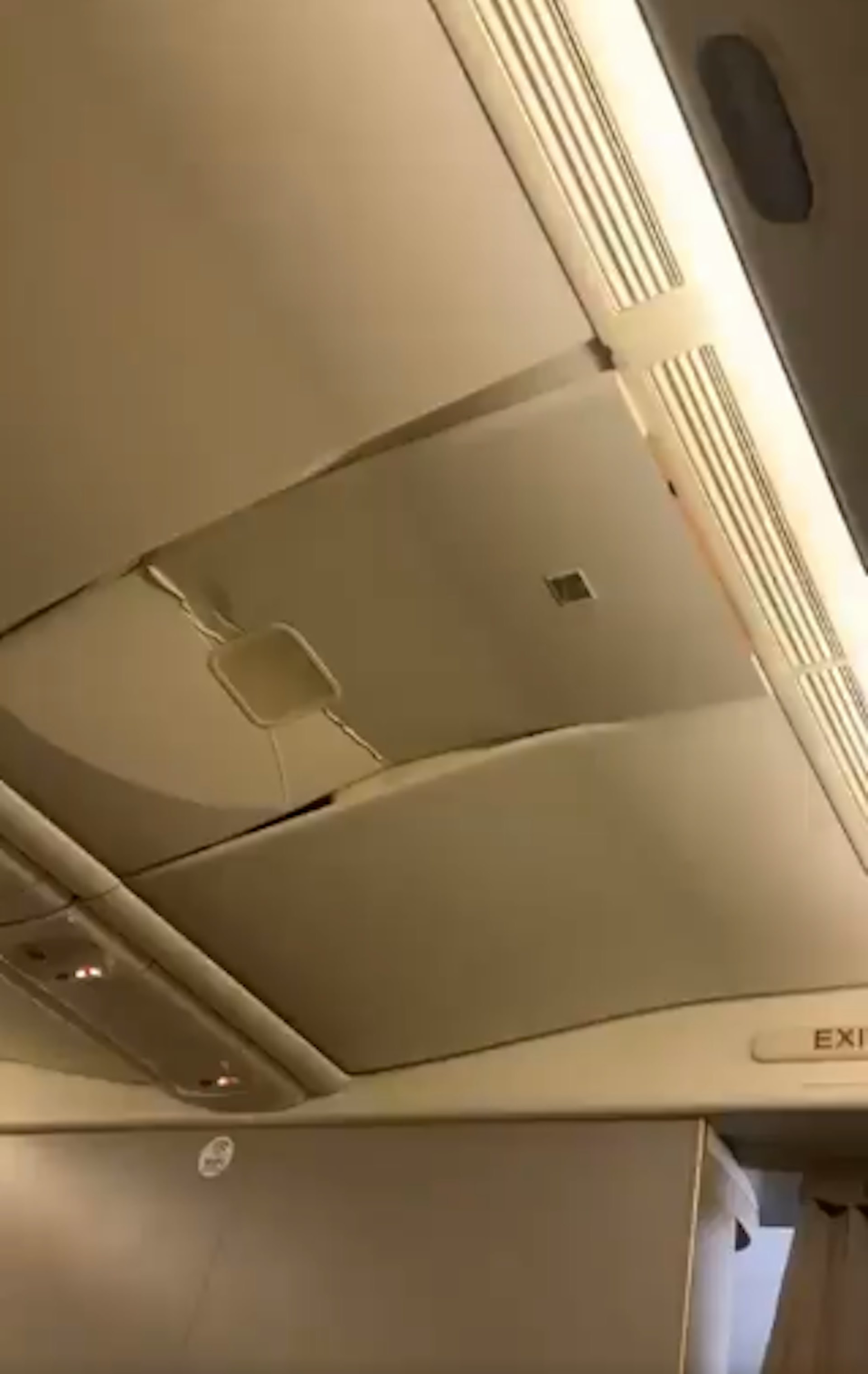 7 ^" p+ o' w) ?( ^公仔箱論壇他又指「有些人的頭撞到頭頂的行李艙,把行李艙撞凹,他們撞到燈和放氧氣罩的位置,直接撞破了。」