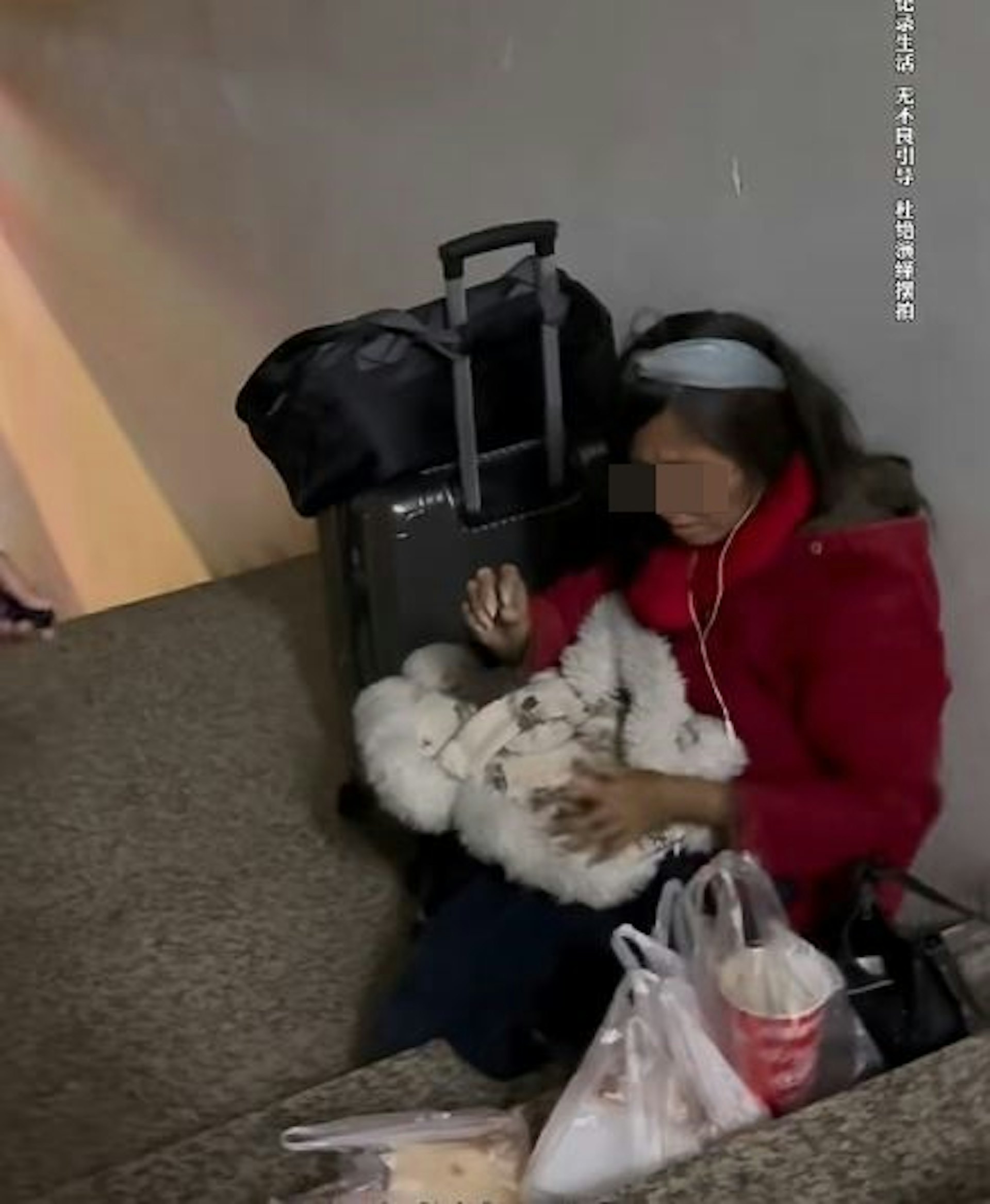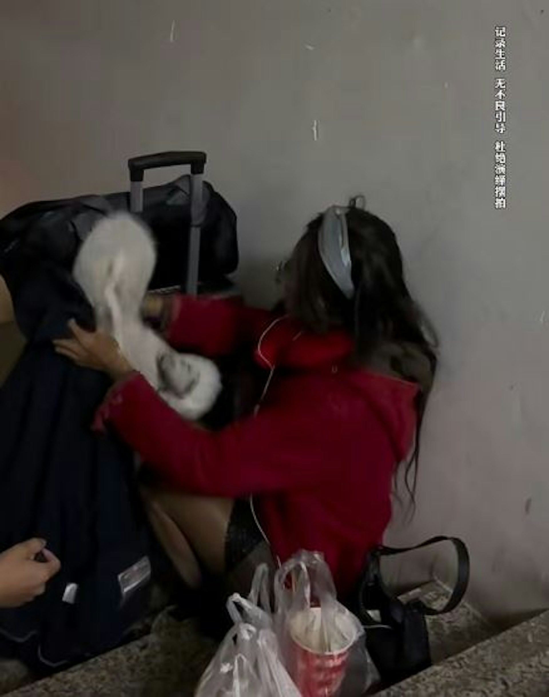 她現今在深圳無固定住所,自去年從香港來到這裏以來一直在公園或火車站過夜,天冷時則躲進人行隧道避寒。(影片截圖)