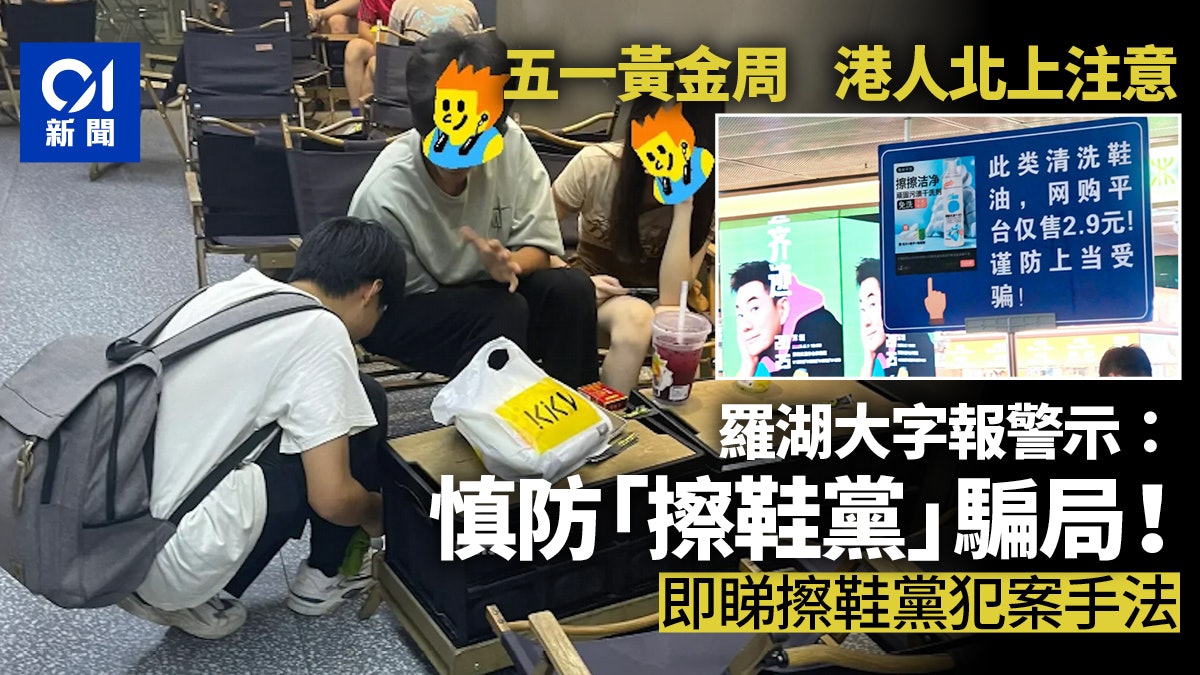內地「擦鞋黨」騙局已非新鮮事,然而近日有網民發現,口岸出現竟出現一張藍底白字的官方警示「大字報」,圖文並茂提醒旅客慎防「擦鞋黨」騙局。大字報寫明:「此類清洗鞋油,網購平台僅售2.9元(人民幣)!謹防上當受騙!」並附上網購平台截圖佐證,引發熱議。
