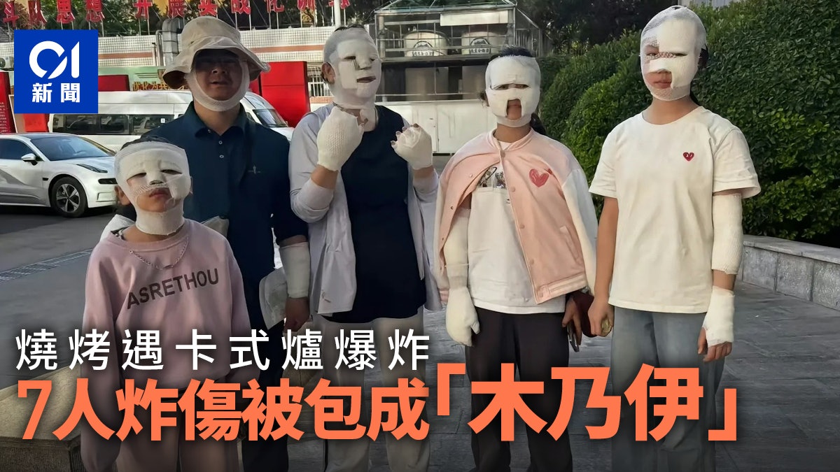 7人炸傷被包成「木乃伊」。(微博)os.tvboxnow.com& L5 d: D, V1 I! T3 S6 n/ Y' U$ r4 L2 }