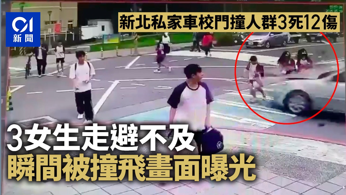 台灣新北市三峽區周一(5月19日)發生汽車衝撞人群事故,78歲姓余司機在小學外撞倒多名學生,造成3人死亡、12人傷,死傷有9人都是三峽國中學生。最新監控畫面顯示,幾名女生過斑馬線被高速撞飛,當中有人雖抬頭發現汽車衝來,但根本來不及躲。公仔箱論壇9 R. }+ E) U! X9 w+ n4 Y0 T