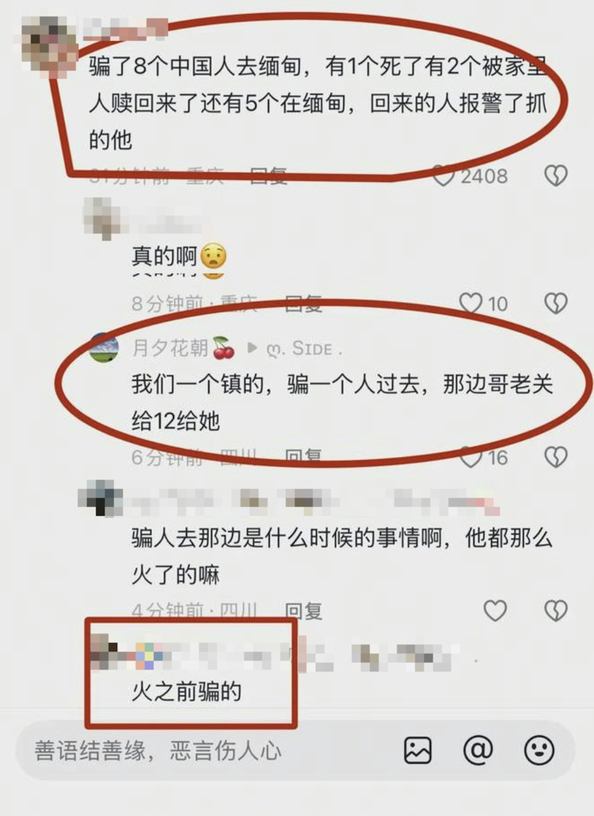 超過80萬人追蹤的四川搞笑網紅「小四爺」被警方帶走,網傳他涉嫌參與跨境詐騙集團,將8名內地民眾誘騙至緬北,其中1人疑似死亡,目前還有5人受困園區,他每次誘騙1人就可以得到12萬元人民幣的報酬,消息於27日衝上新浪熱搜,引發網民熱議。公仔箱論壇, G6 R- L2 B' X3 v7 {! m8 b$ c