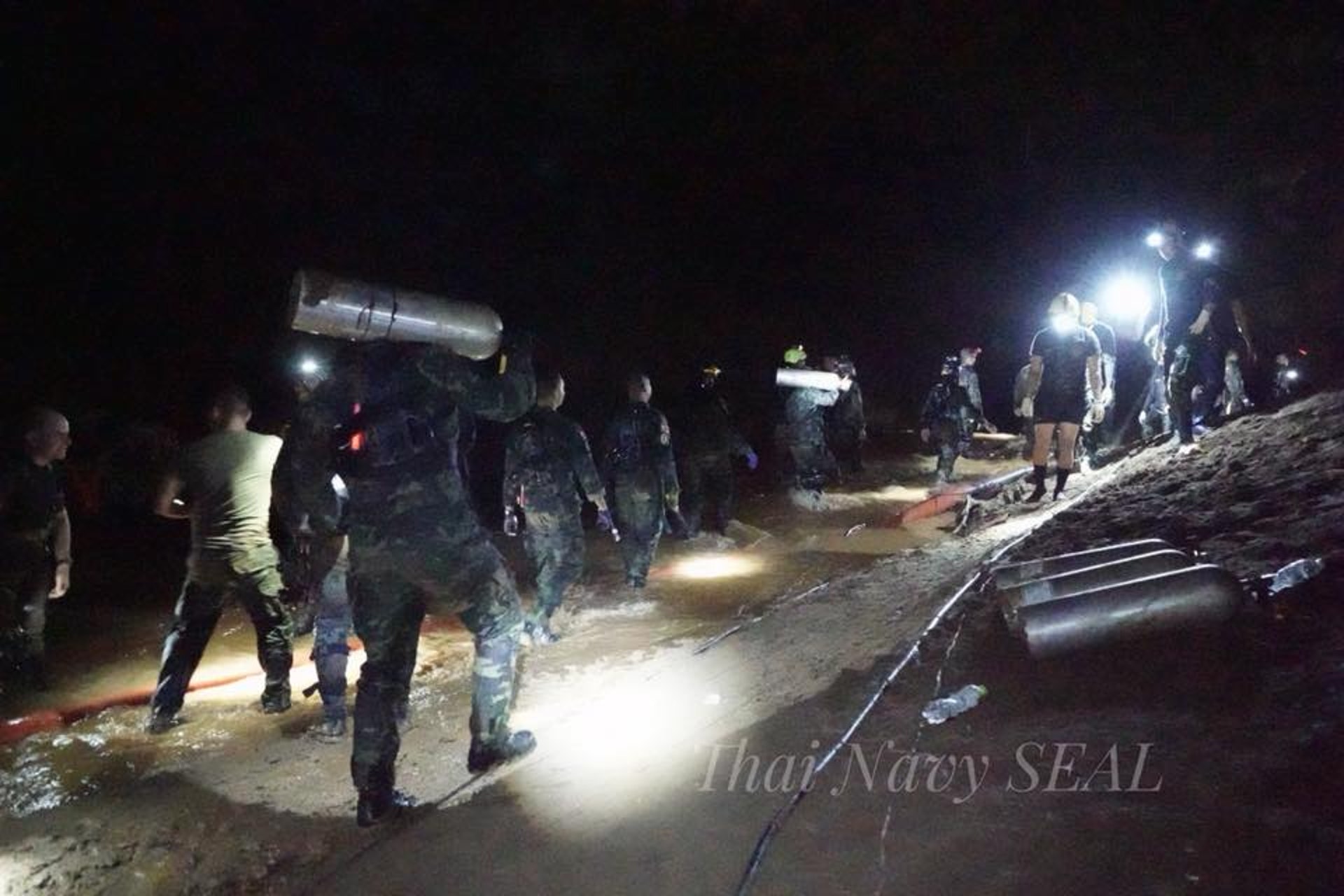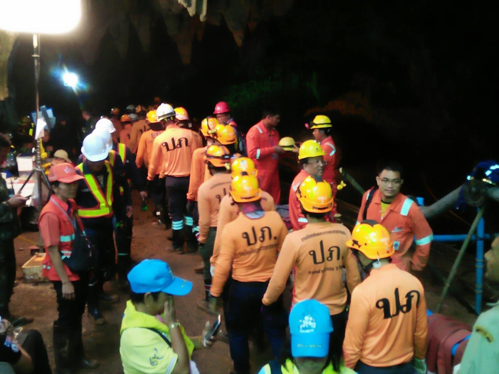據官員透露,因部分洞穴罅隙狹小,獲救少年起初是由兩個潛水員一組,「二對一」地又潛又行。及至第三洞室與第二洞室內,逾100名救援人員在場,各人各有分工,每段路亦有醫護人員協助為救出的少年作身體檢查,送至洞口再由直升機及救護車送院治理。現場的壁報板上,寫上了多名救援人員的國籍及數目,他們在今次世紀拯救行動中均居功至偉。
