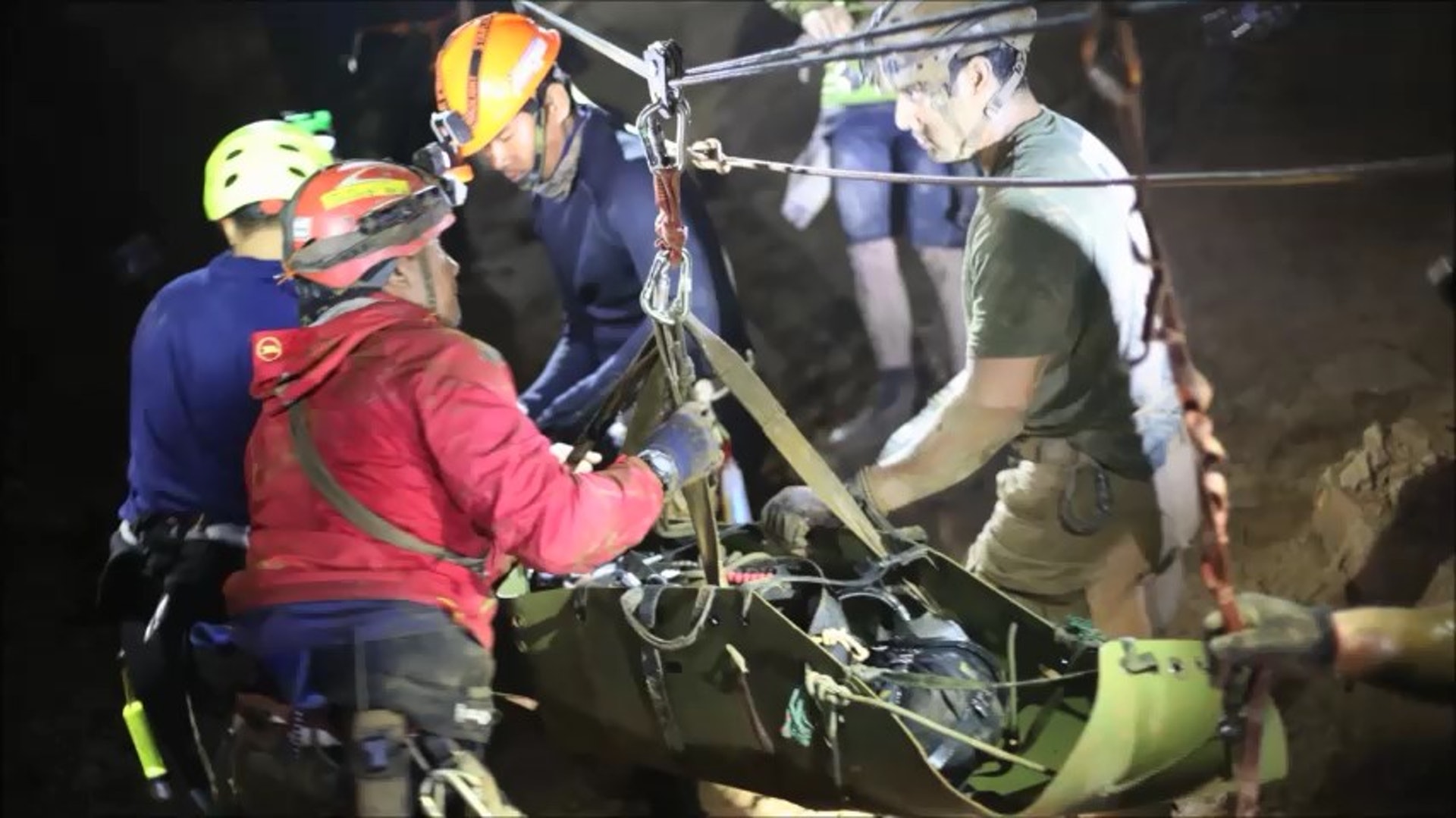 「小孩甚麼都不用做,睡著似地讓我們拉出來!」當尋獲被困的12名野豬隊成員成及教練,經醫生在場監定及考慮到環境因素,泰國當局遂決定在8號開始展開連續三天的拯救行動。從拯救片段可見,當時被困少年獲救離險境後,抵達第三洞室,即救援大本營內。他被保温物料包裹着,戴着全副面罩,全程躺卧在擔架床上,再由拯救人員協助又抬又扛,其間亦曾以繩索吊運。: E# _, l" E8 f