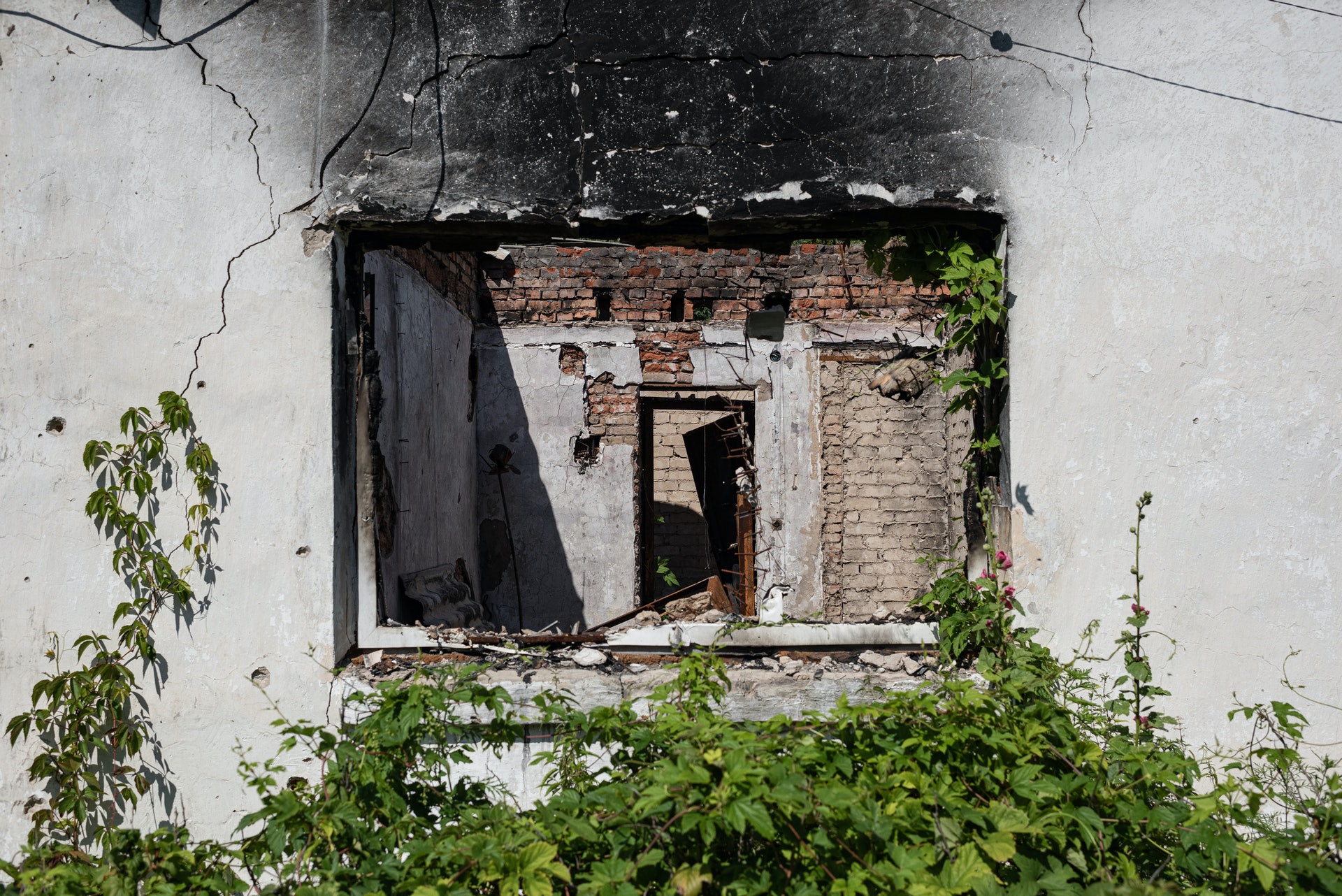 3 z% `% [0 F1 O2022年7月23日,在烏克蘭北部切爾尼戈夫地區亞希德內村(Yahidne),遺下多棟受炮火轟炸過、人去樓空的破屋。(Alexey Furman/Getty Images)tvb now,tvbnow,bttvb% R: \* K: h+ Y