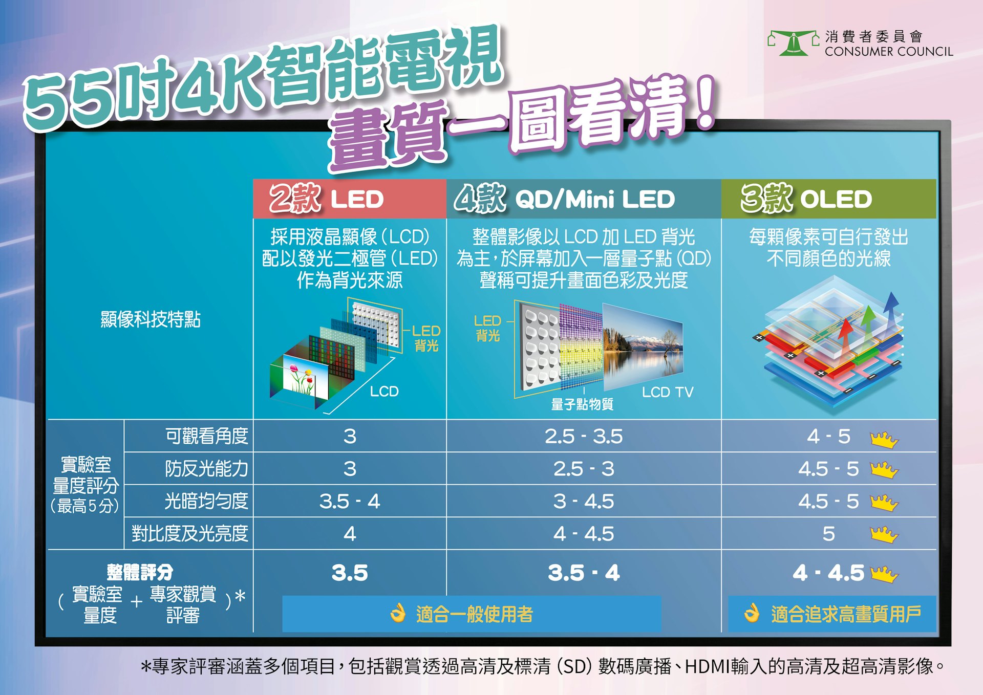 消委會55吋4K電視|OLED款Samsung三星4星半最佳 LG、Sony獲4星tvb now,tvbnow,bttvb7 C% V! t3 Y1 n