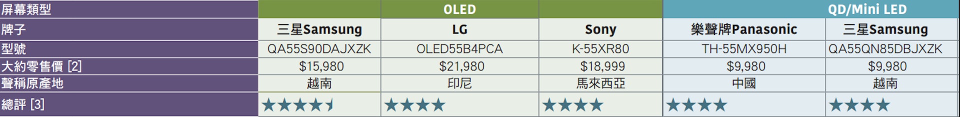 , W! l, S. f- o. `" a3 V2 J$ J6 o3、OLED:Sony K-55XR80;售價:$18,999;聲稱原產地:馬來西亞;整體評分:4星tvb now,tvbnow,bttvb2 o% X0 t7 p7 P' K) g