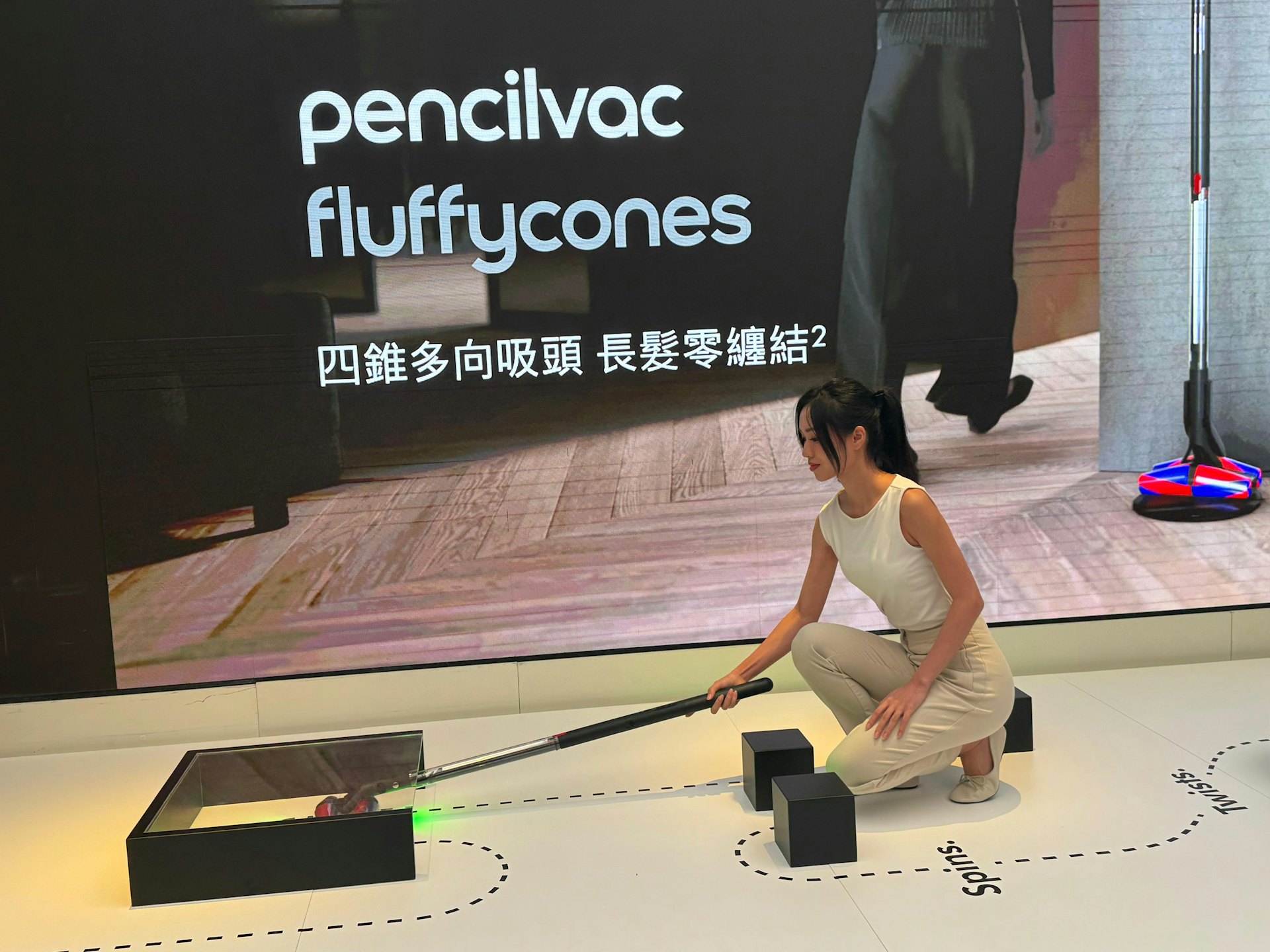 Dyson PencilVac Fluffycones配備了創新的Fluffycones四錐多向吸頭,該吸頭能有效解決長髮纏結的困擾。其前後四個軟絨錐形滾筒以相反方向旋轉,能夠在吸入頭髮時將其捲出,從而避免纏結。吸頭上的尼龍刷毛經過特別角度設計,能加快頭髮移動,同時有效清除地板上的微細灰塵和碎屑。此外,吸頭兩側的延伸設計,使刷毛能夠緊貼牆腳線進行清潔,實現全方位無死角的清潔效果。除了強勁的吸力與全新吸頭外,新機還採用了全新流線型氣流分離技術,能夠捕捉高達99.99%小至0.3微米的微粒 。這款吸塵機是Dyson首款採用全新雙重過濾系統的吸塵機,透過網狀濾網和PTFE褶皺式濾網,將灰塵和碎屑從氣流中分離,並將塵埃收集於完全密封的氣壓式壓縮集塵筒內,防止濾網堵塞或清潔效能下降 。集塵筒的全新設計利用氣流將塵埃壓實,有效提升集塵筒容量並減少清空次數,同時配備創新免觸式及針管式塵筒清空系統,確保衛生清空過程,減少揚塵。