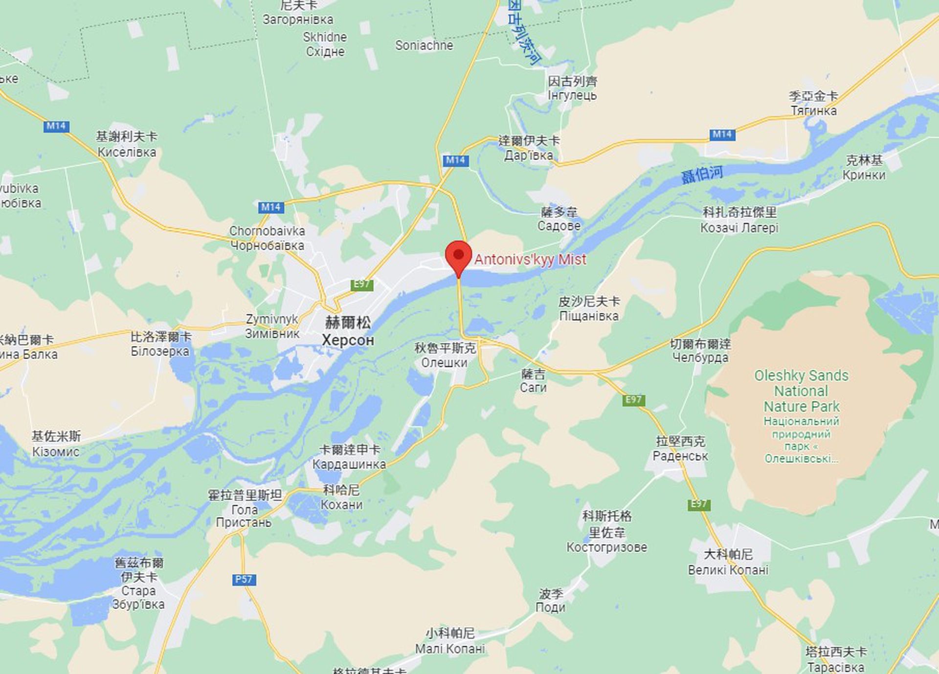 ) s$ e; n: j" mos.tvboxnow.comAntonivskiy大橋的位置。(Google地圖截圖)TVBNOW 含有熱門話題,最新最快電視,軟體,遊戲,電影,動漫及日常生活及興趣交流等資訊。9 b% y& o8 Z. q8 h& N0 v# T; N