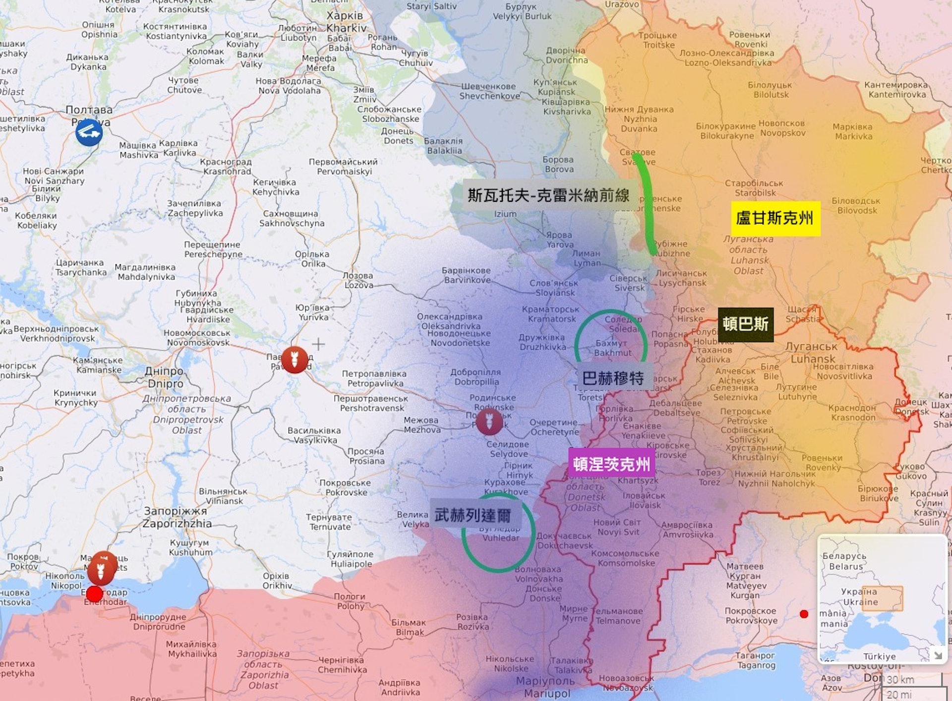 共三路:盧甘斯克斯瓦托夫-克雷米納前線、頓涅茨克巴赫穆特和武赫列達爾。公仔箱論壇" M) v7 ]3 y0 S$ W* @/ w
