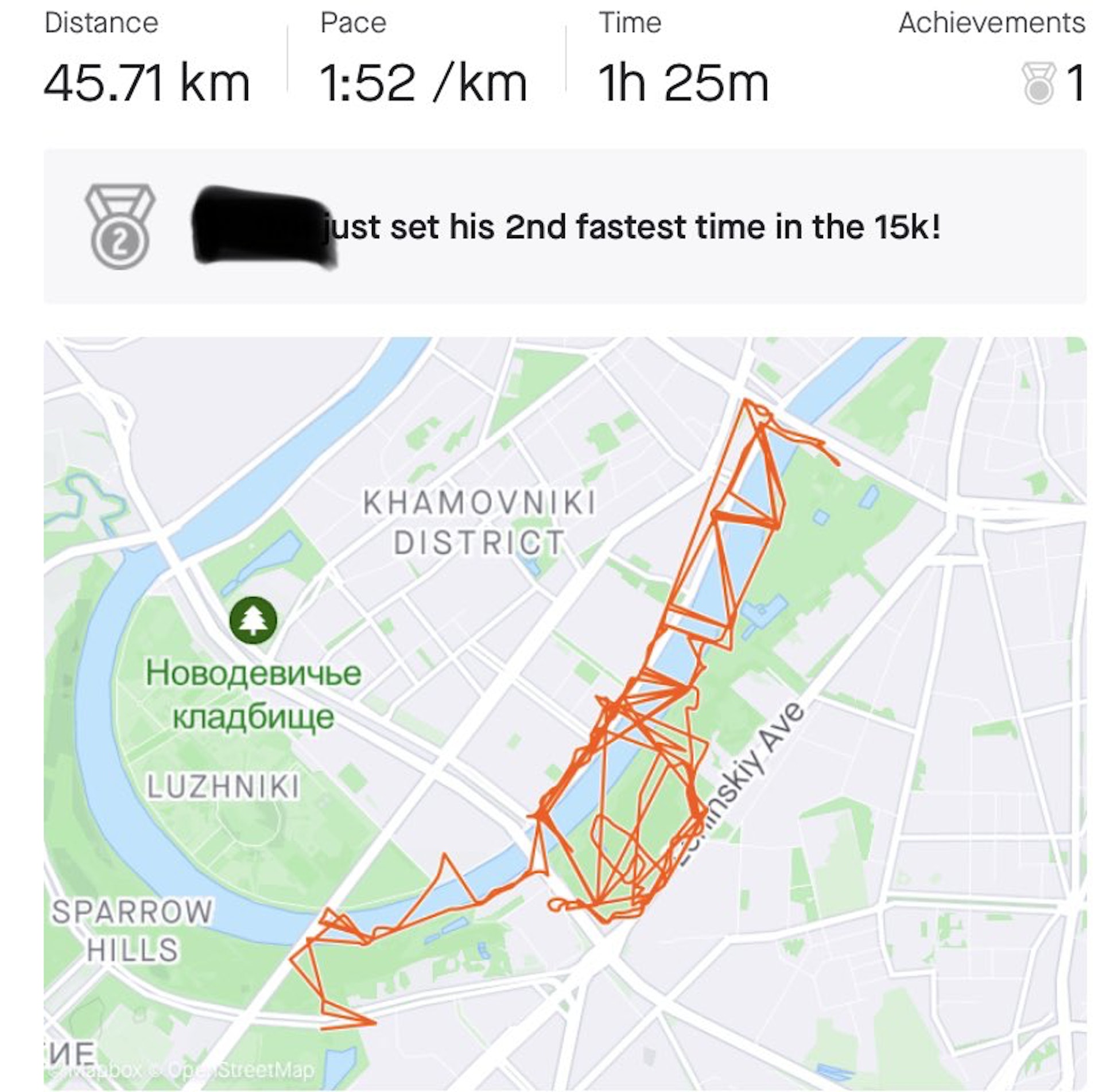 s( d5 A9 ~5 J6 J' K網上流傳的莫斯科Strava 跑步紀錄,圖中顯示的距離和速度至少比馬拉松世界紀錄快了半個小時。本刊未能證實此圖真偽。(Twitter@francis_scarr)tvb now,tvbnow,bttvb2 m( X) A: D, q9 i' g" J2 v' W6 N