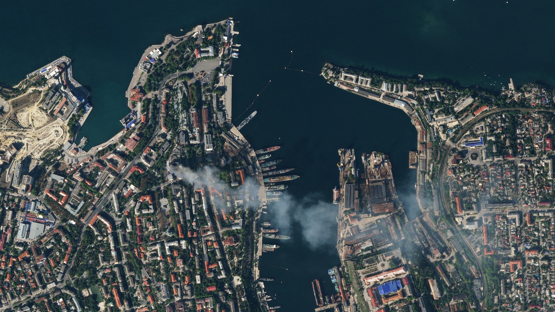 ( R E6 s% D }- R& Q4 M公仔箱論壇衛星影像顯示,2023年9月22日,位於克里米亞(Crimea)塞瓦斯托波爾(Sevastopol)的俄羅斯黑海司令部冒出濃煙。(Reuters)tvb now,tvbnow,bttvb. Q3 P) d6 C; ^4 a