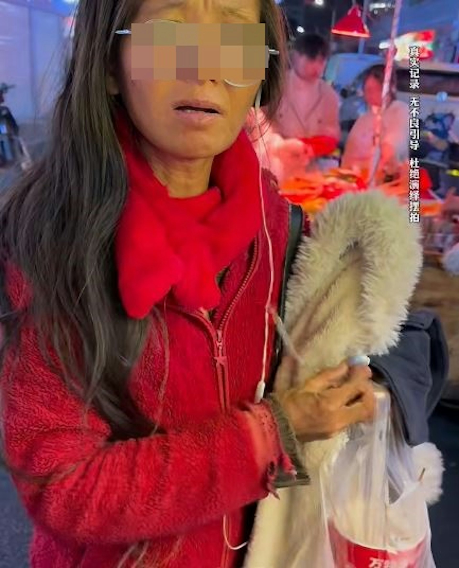 該影片由小紅書博主「星星之火照亮前方」發布,記錄了博主在深圳布吉遇到這位流浪女子的情況。片中,該女子披頭散髮,頭戴髮箍和眼鏡,獨自拖著行李箱等,欲在小食檔前欲購買食物。博主試圖幫助她,經過一番努力後,她終於接受了提供的食物和金錢。