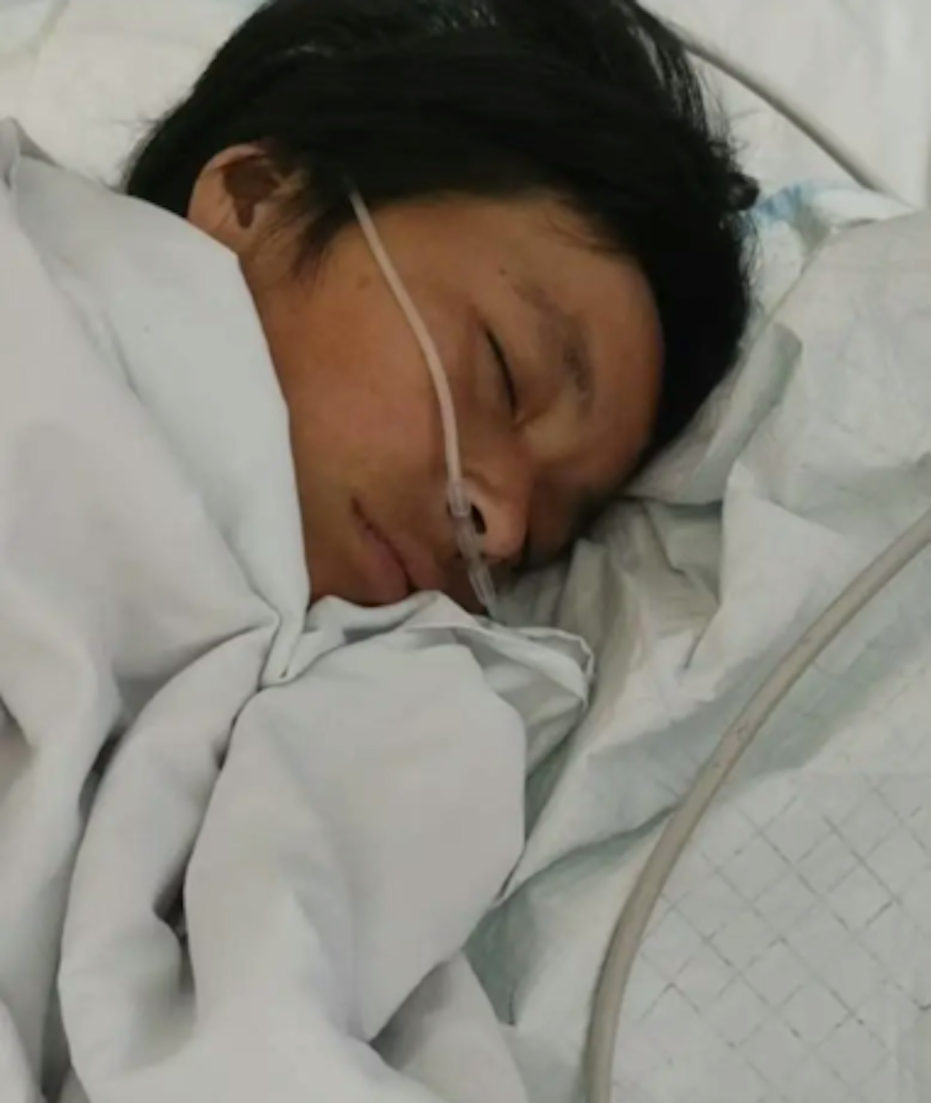 . B/ v4 ^' g* [4 y3 \# I公仔箱論壇獲救後的余小梅,在醫院裹緊棉被睡覺。(封面新聞)