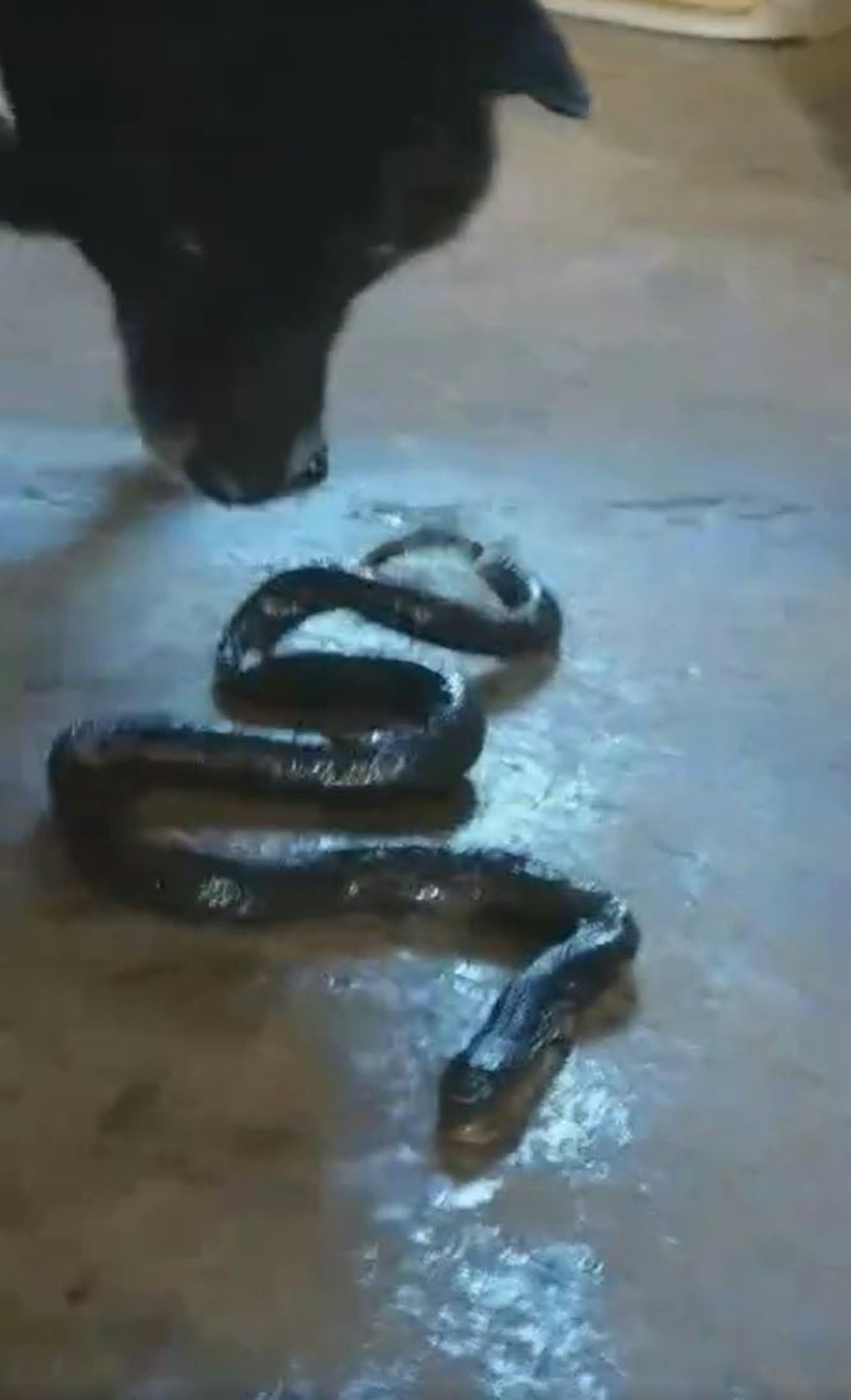 樓主在facebook群組「北區之友 Friends of North District (上水、粉嶺、沙頭角和打鼓嶺)」上載影片,片長約17秒,顯示1隻黑狗一停張口猛咬眼鏡蛇,而該條大蛇身長逾1米,當時已近乎沒有反應。其後黑狗突然咬住蛇身狂揈,未知是否怕眼鏡蛇臨死反擊。影片聽到現場有外傭不斷用半鹹唔廣東喊「好大條呀!」,又疑用國語喘氣說:「嚇得啊!」網民看片後以為是印意配音,但樓主其後解釋「唔係配音,係我屋企印尼姐姐」。