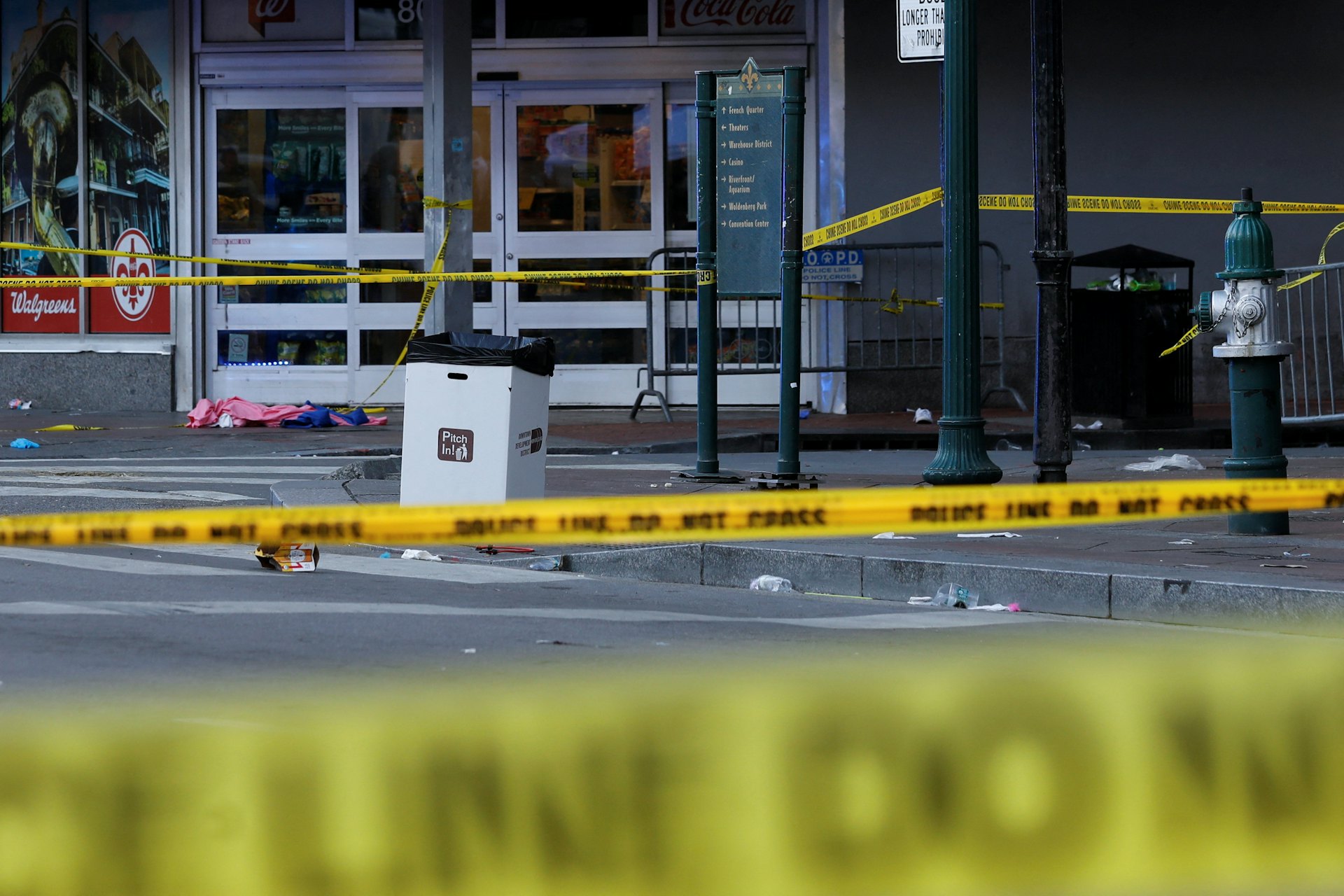 2025年1月1日,美國路易斯安那州(Louisiana)新奧爾良市(New Orleans)有汽車衝撞人群。圖為事發現場。(Geoff Burke/USA TODAY NETWORK via REUTERS )
