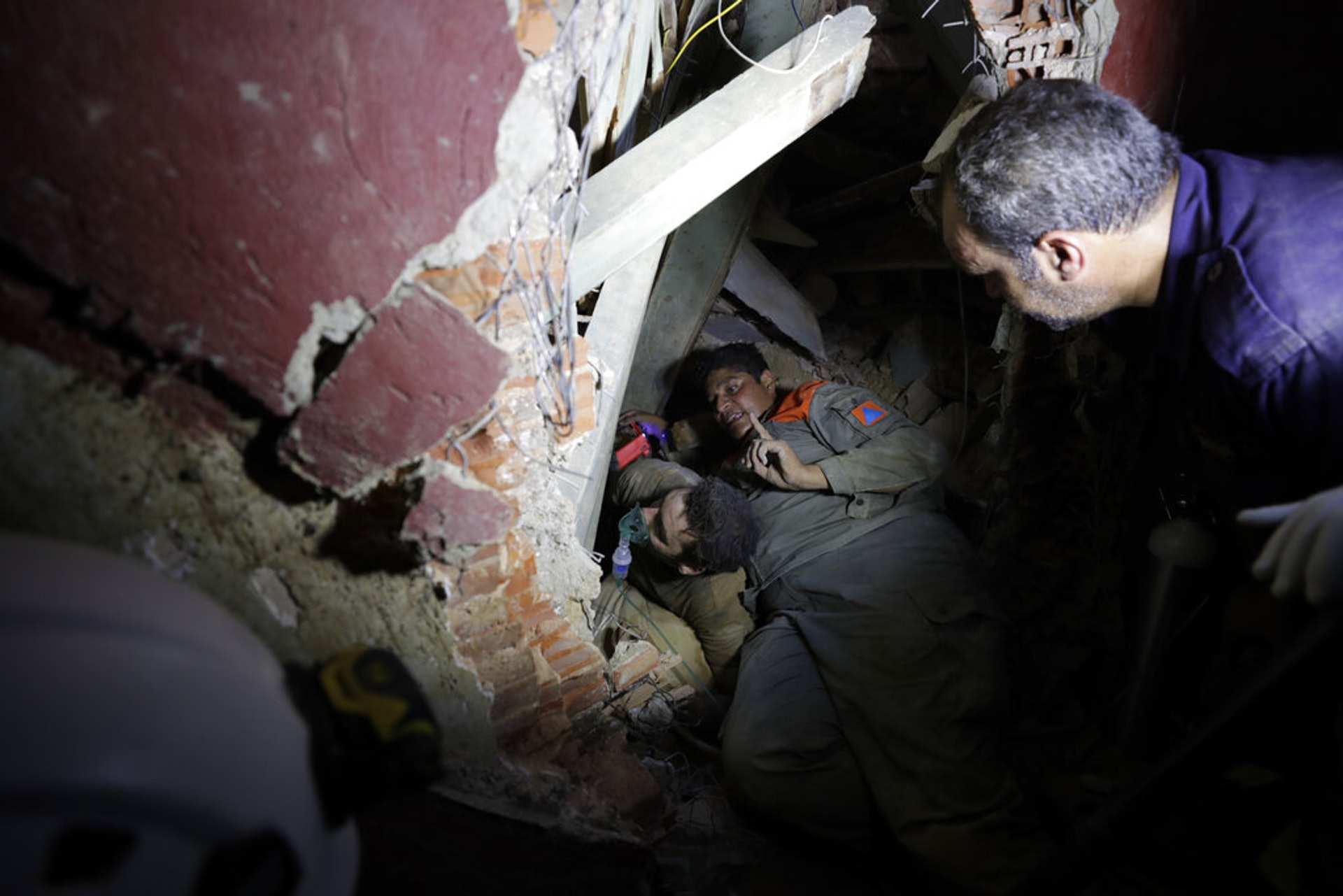 黎巴嫩大爆炸:圖為8月5日黎巴嫩一名男子在瓦礫中被救出。(AP)