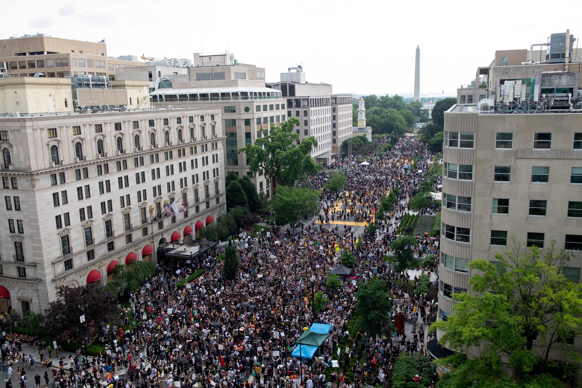 6月6日,抗議者湧入美國首都華盛頓特區和其他主要城市,這是自12天前弗洛伊德死後抗議規模最大的一天:
