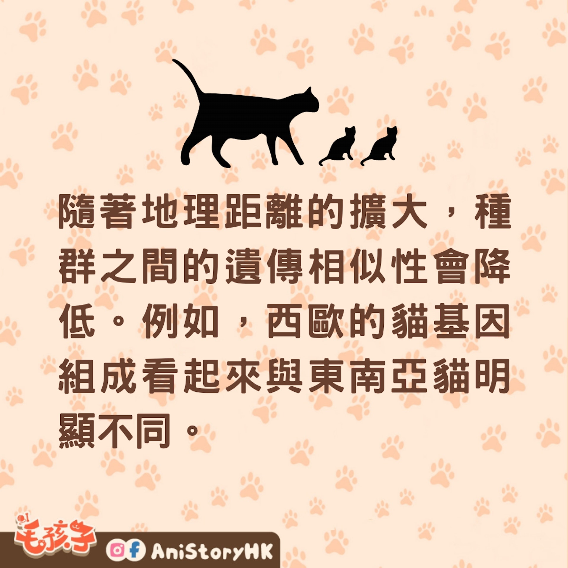 研究人員說,幾千年後,世界各地貓科動物的基因現在顯示出「距離隔離」的跡象,隨著地理距離的擴大,種群之間的遺傳相似性會降低。例如,西歐的貓基因組成看起來與東南亞貓明顯不同。