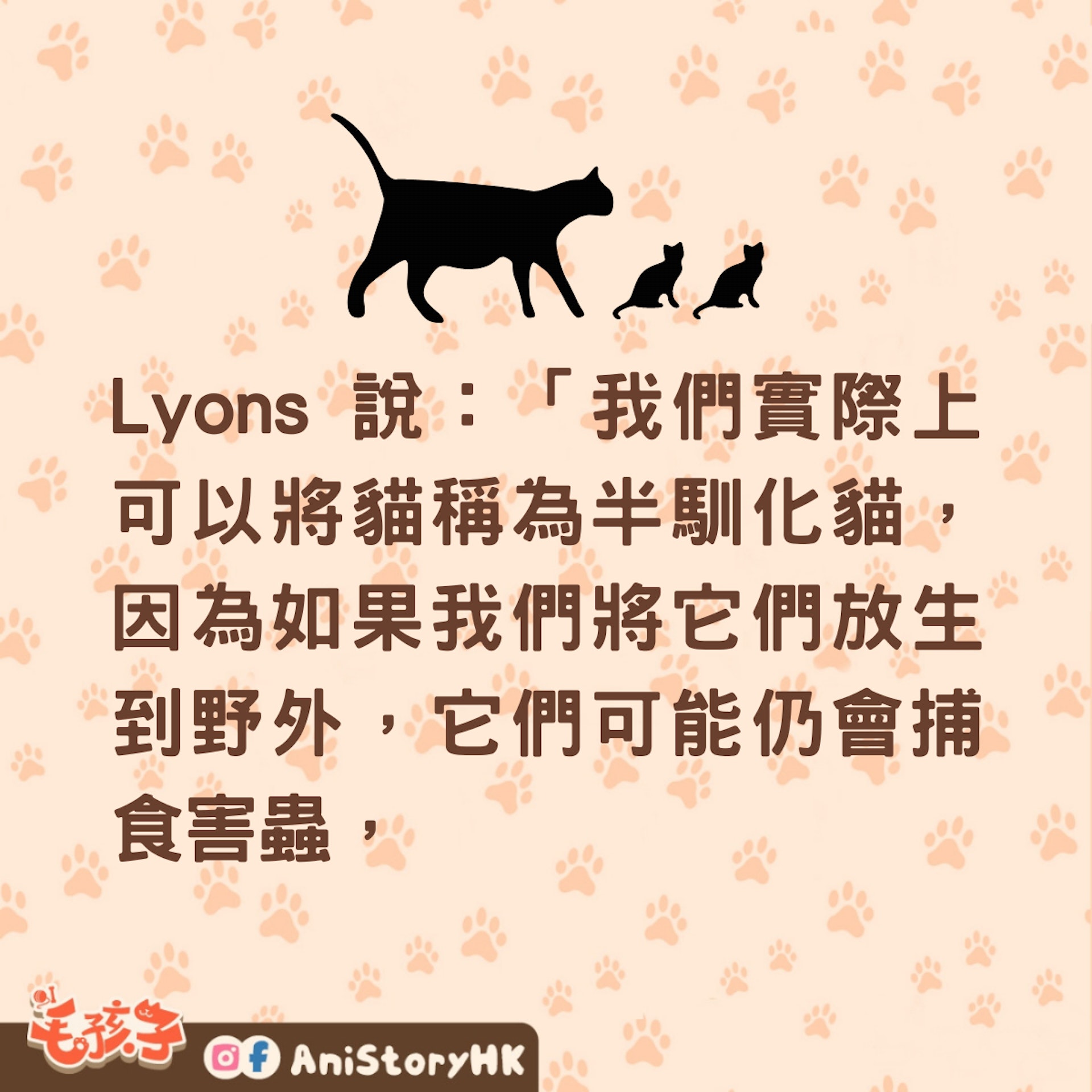 Lyons 說:「我們實際上可以將貓稱為半馴化貓,因為如果我們將它們放生到野外,它們可能仍會捕食害蟲,並且由於它們的自然行為而能夠自行生存和交配。與狗和其他家養動物不同,我們在馴化過程中並沒有真正改變貓的行為,所以貓再次被證明是一種特殊的動物。」