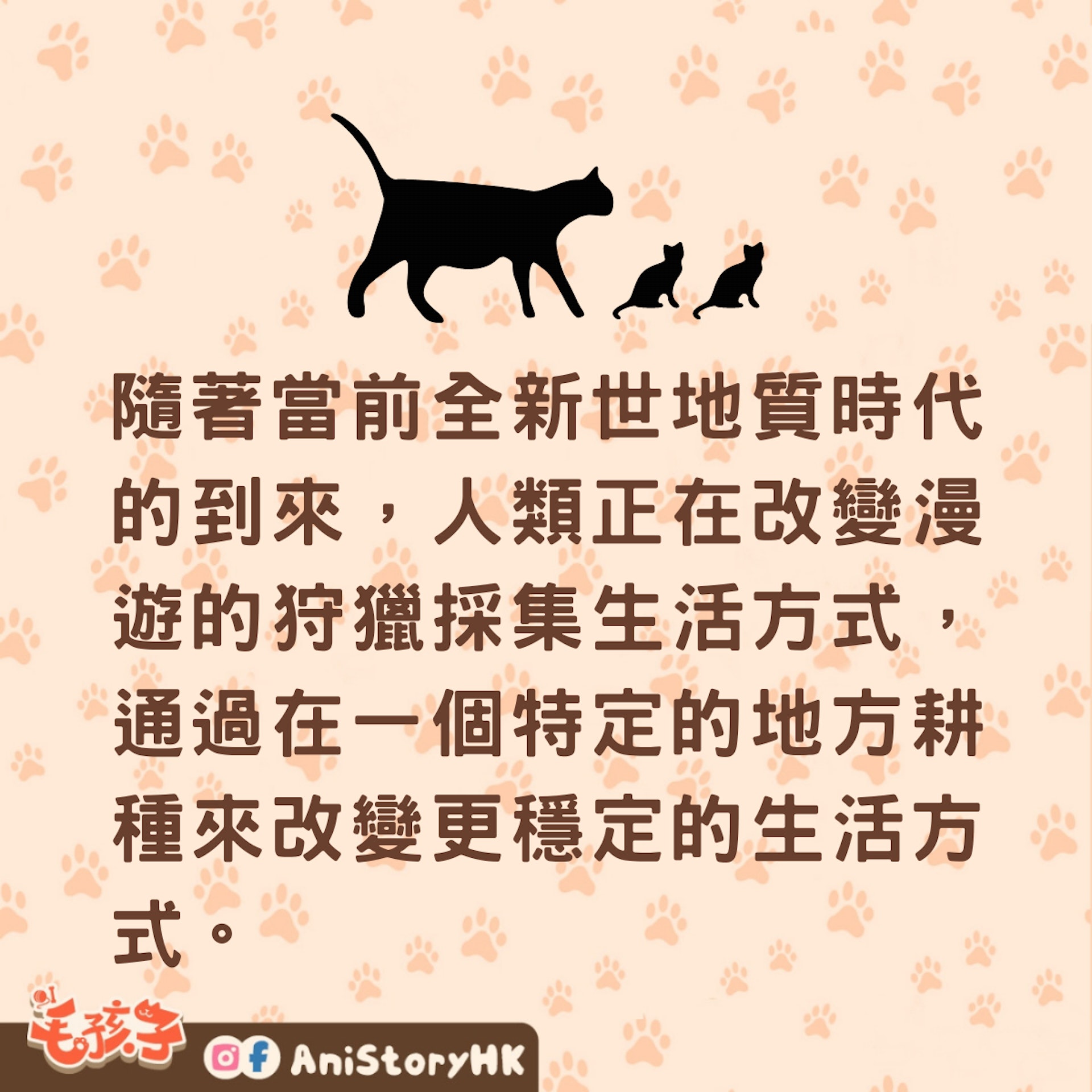 隨著當前全新世地質時代的到來,人類正在改變漫遊的狩獵採集生活方式,通過在一個特定的地方耕種來改變更穩定的生活方式。 貓所提供的囓齒動物害蟲防治將有助於發揮這些新作用,促使社區積極鼓勵它們的存在。