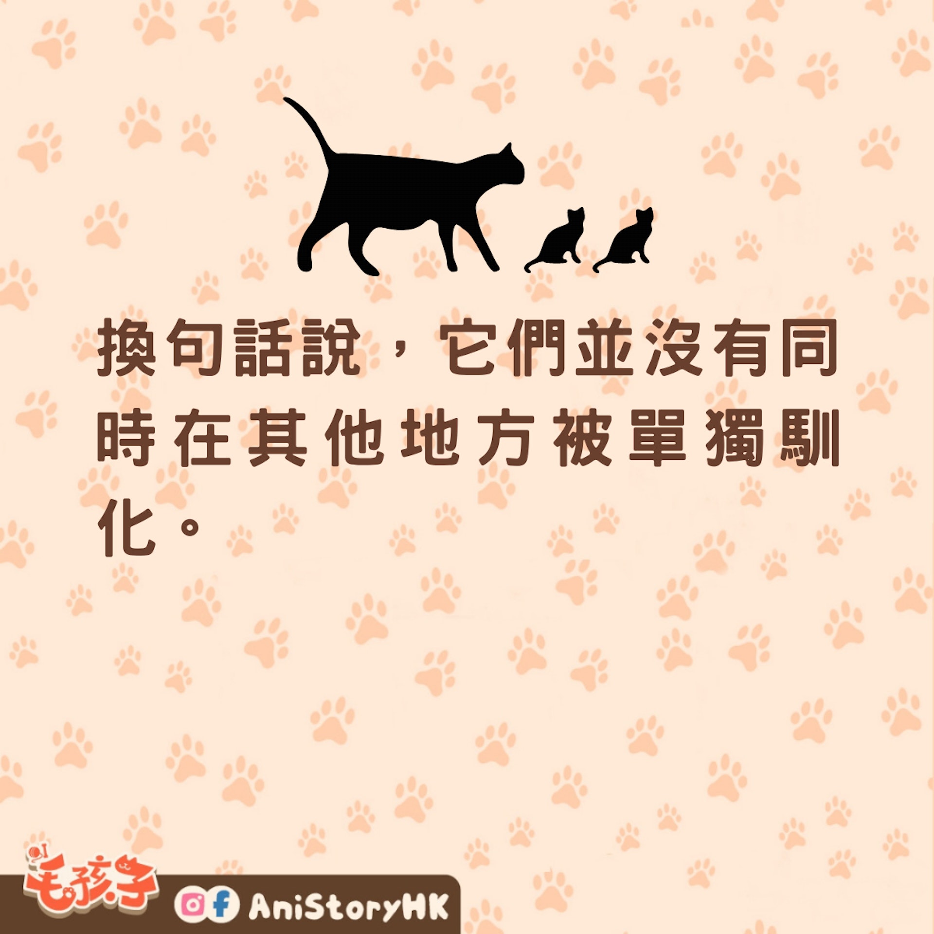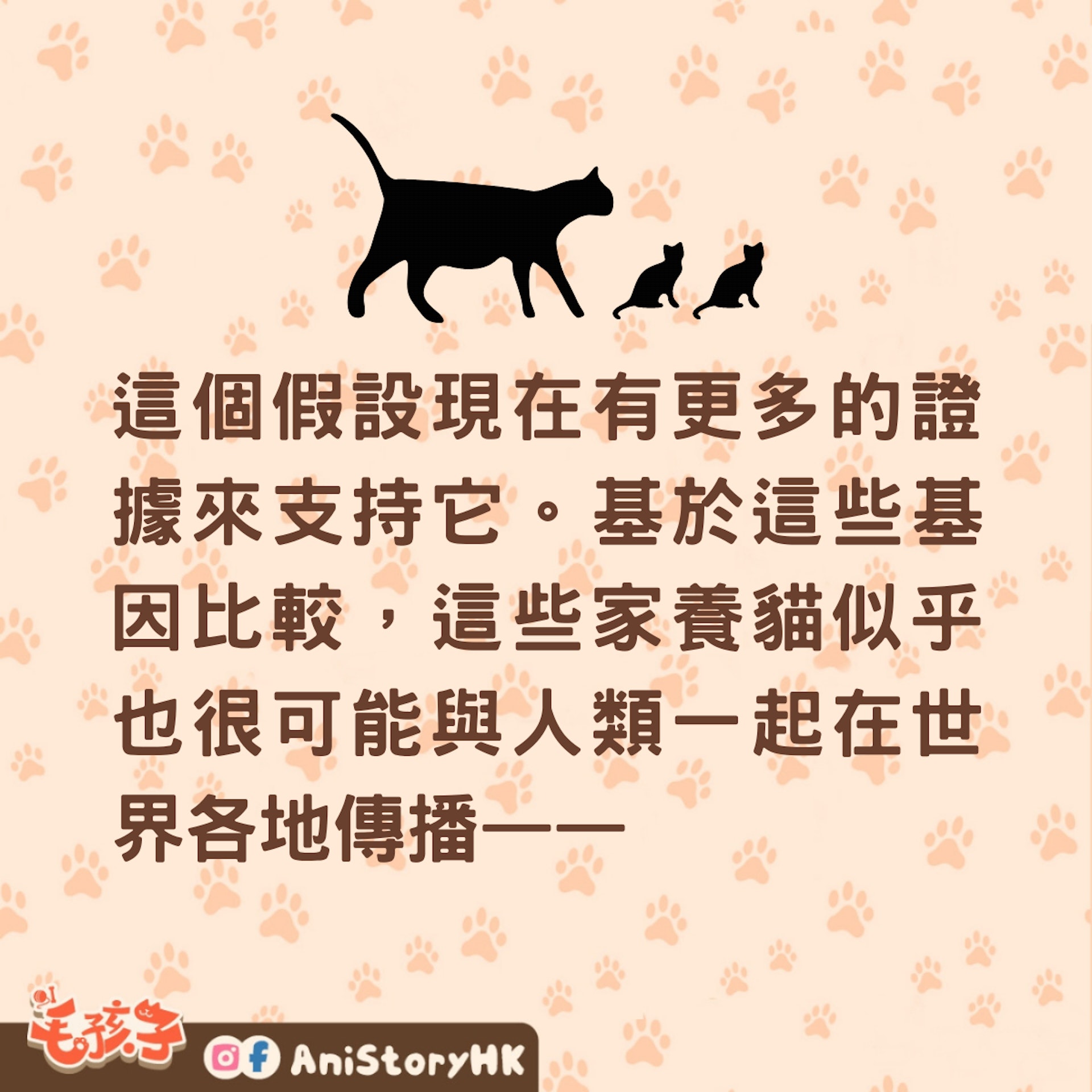 這個假設現在有更多的證據來支持它。基於這些基因比較,這些家養貓似乎也很可能與人類一起在世界各地傳播—— 換句話說,它們並沒有同時在其他地方被單獨馴化。