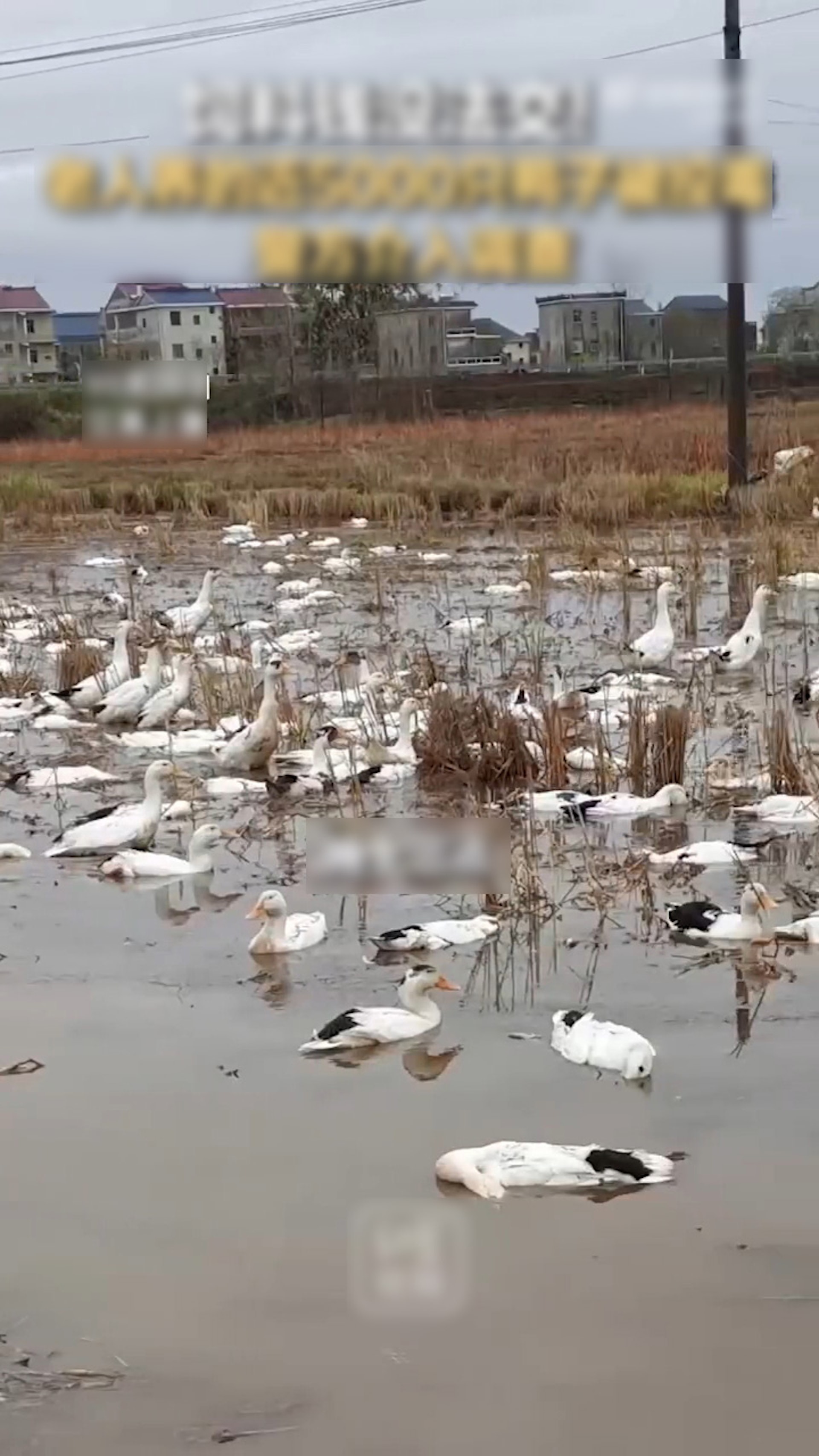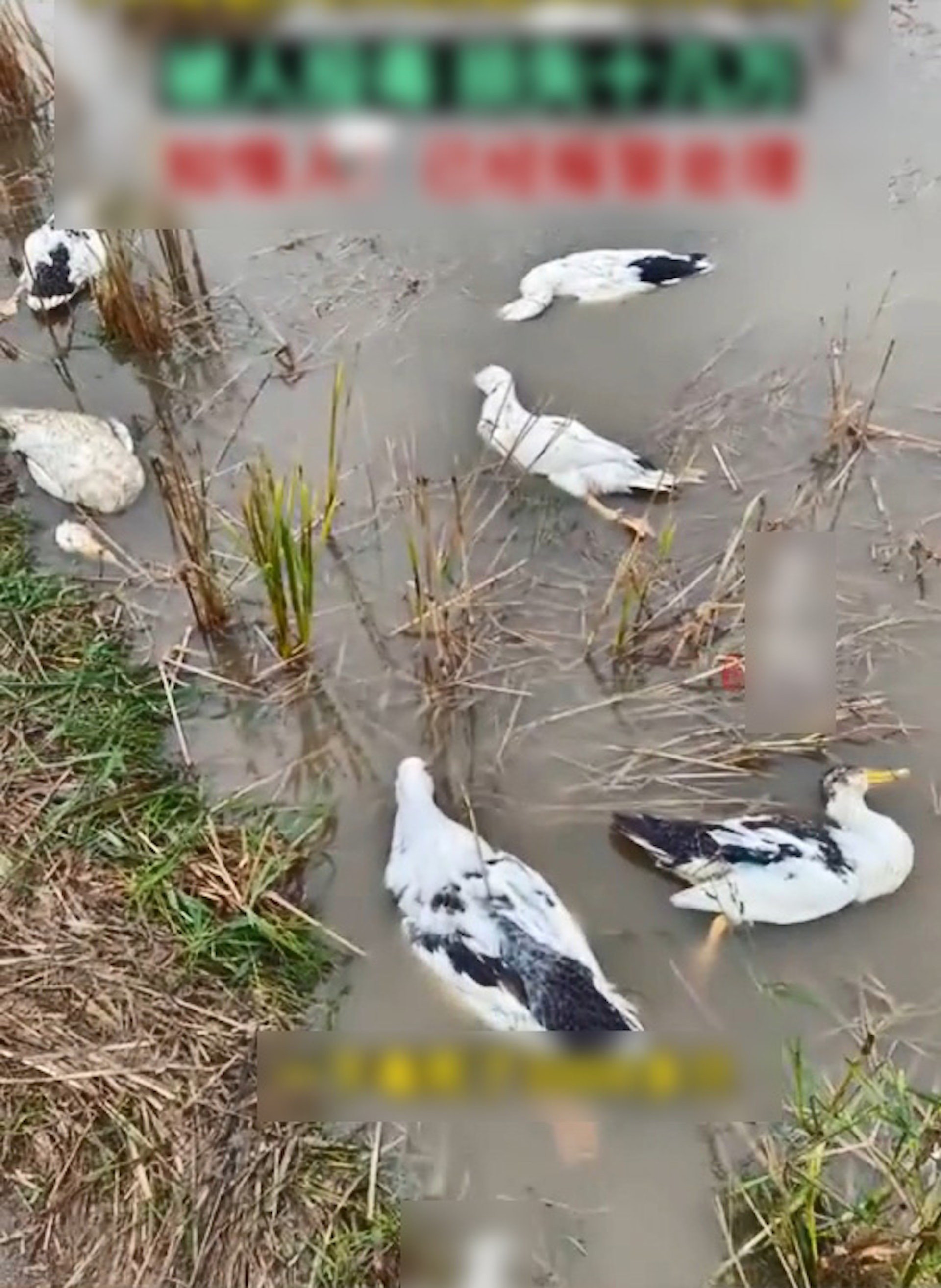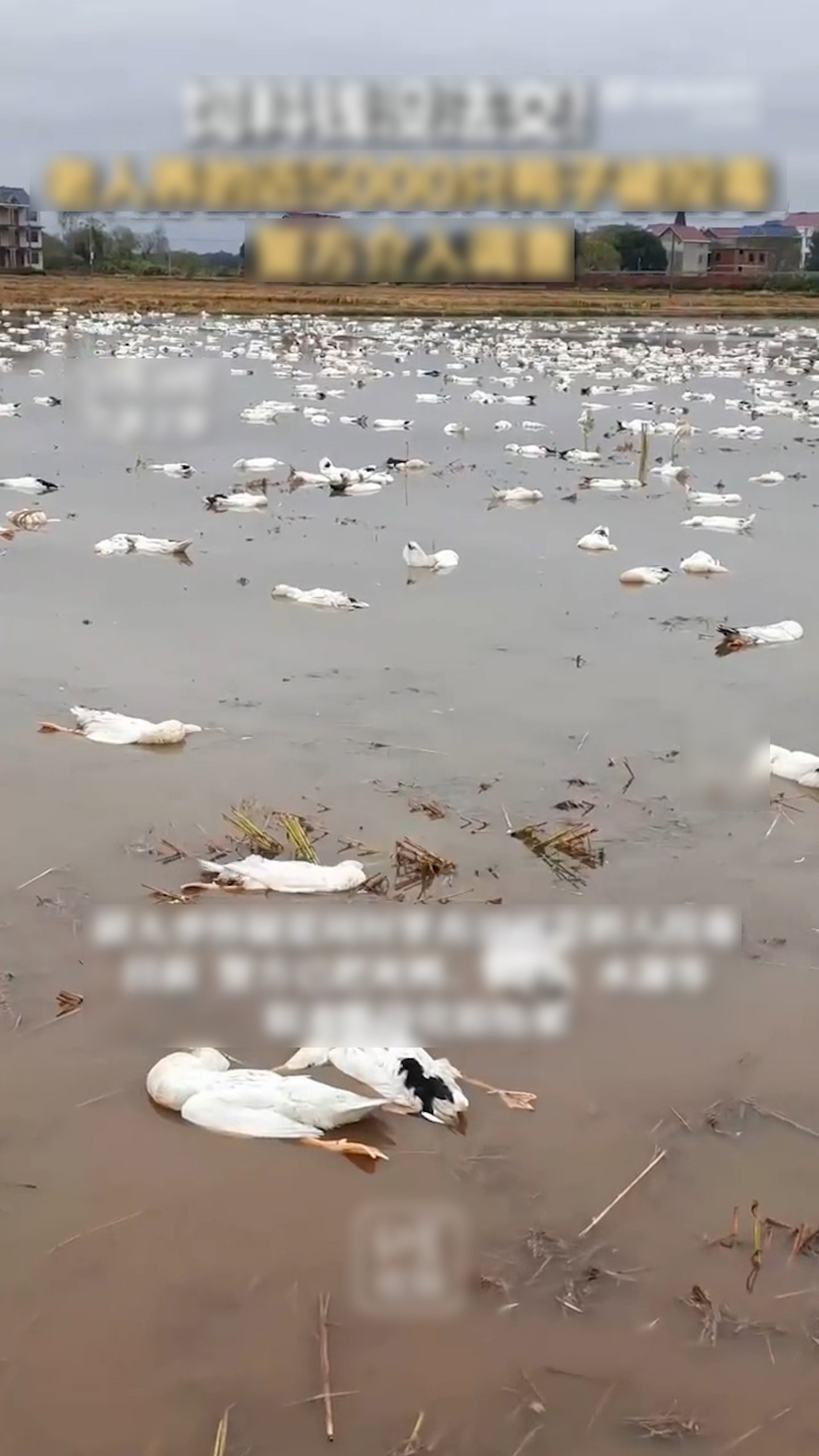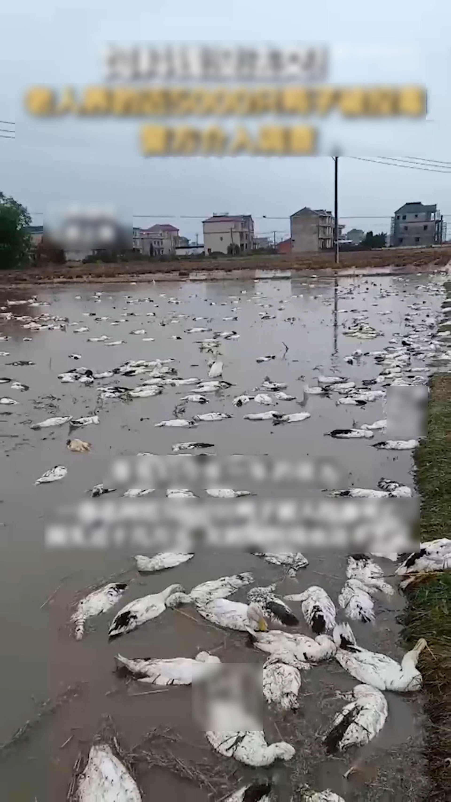 長者們養的鴨子有近5000隻被毒死,醒來時變成「鴨屍池」。(微博影片截圖)