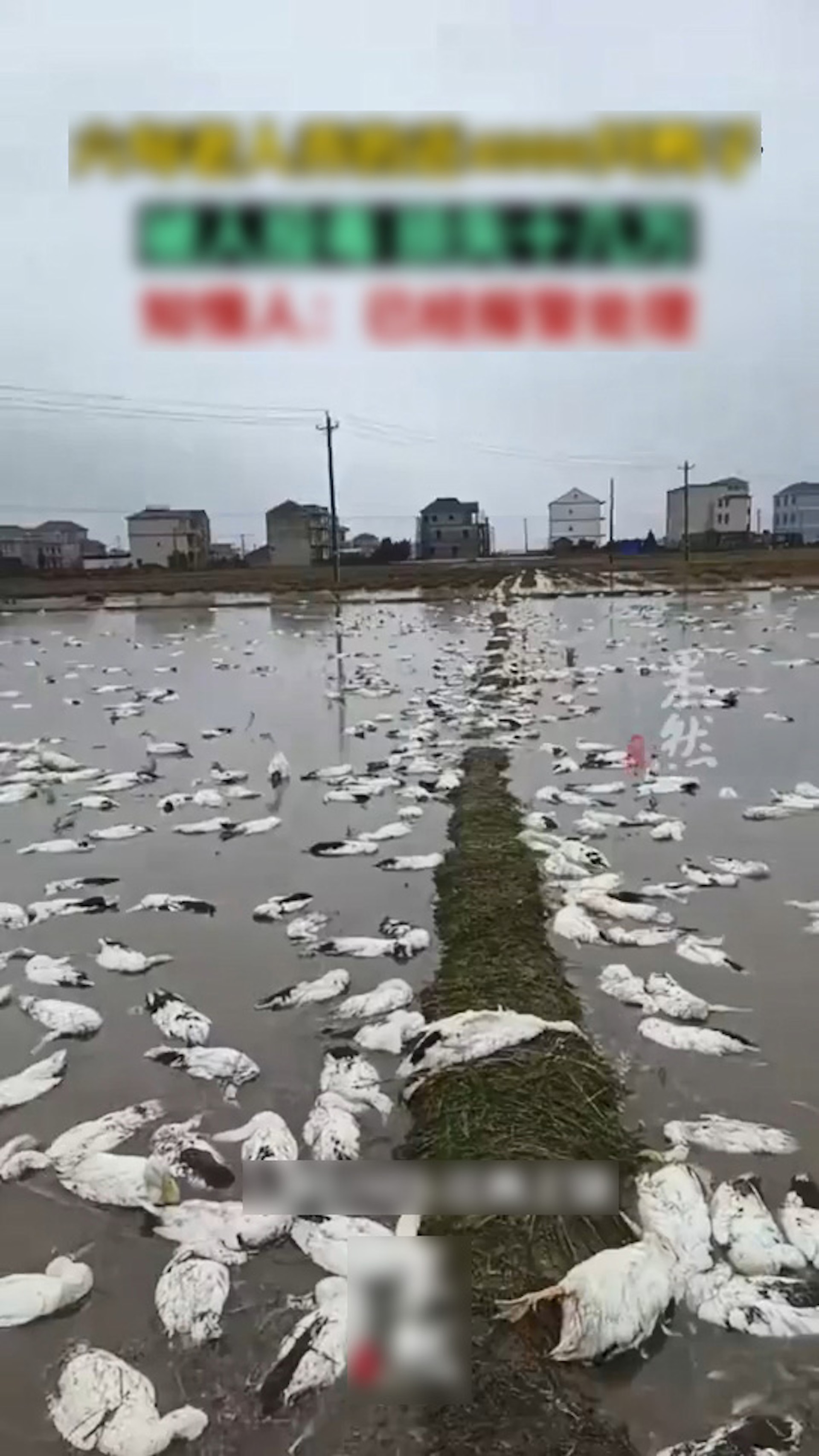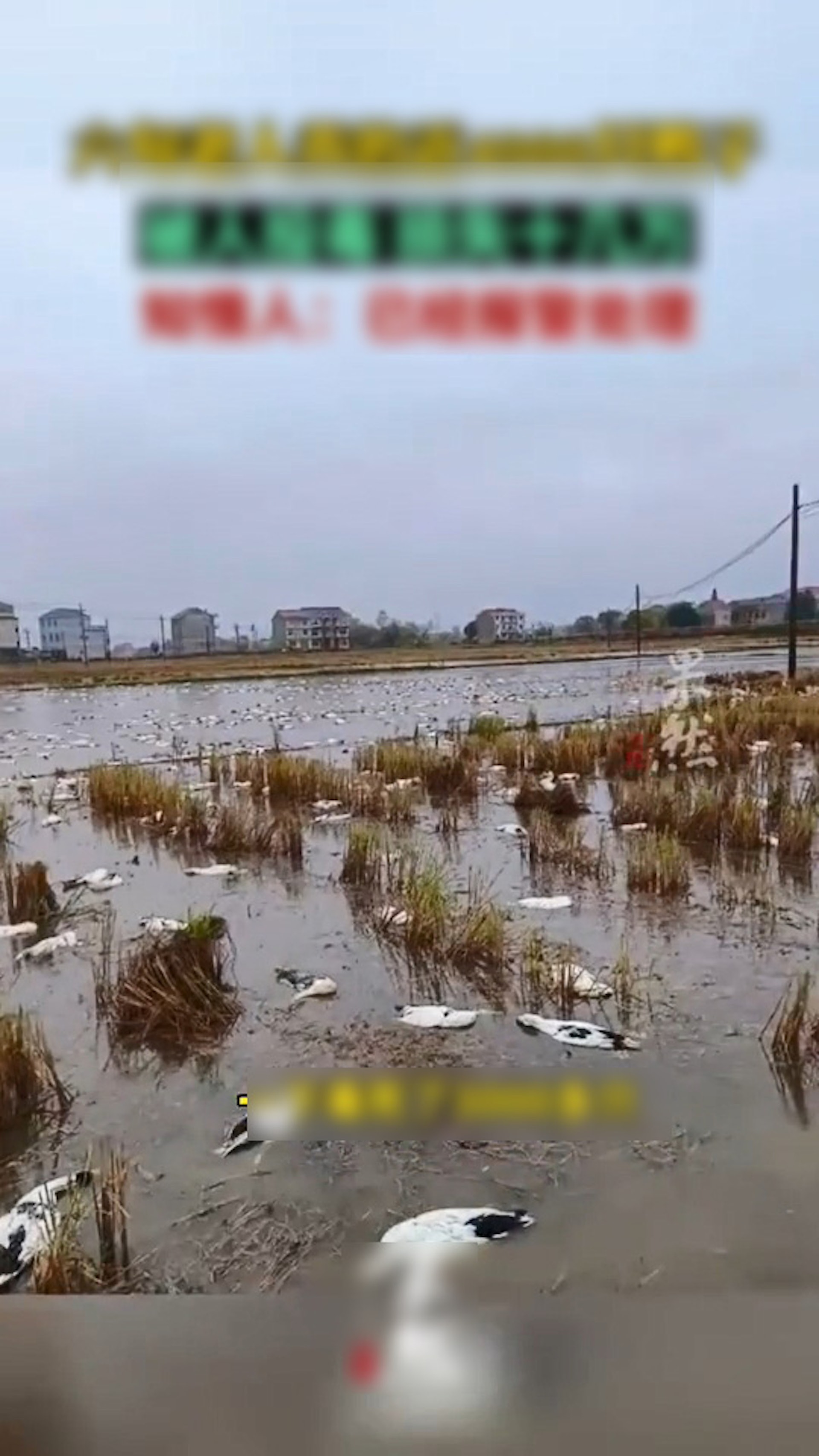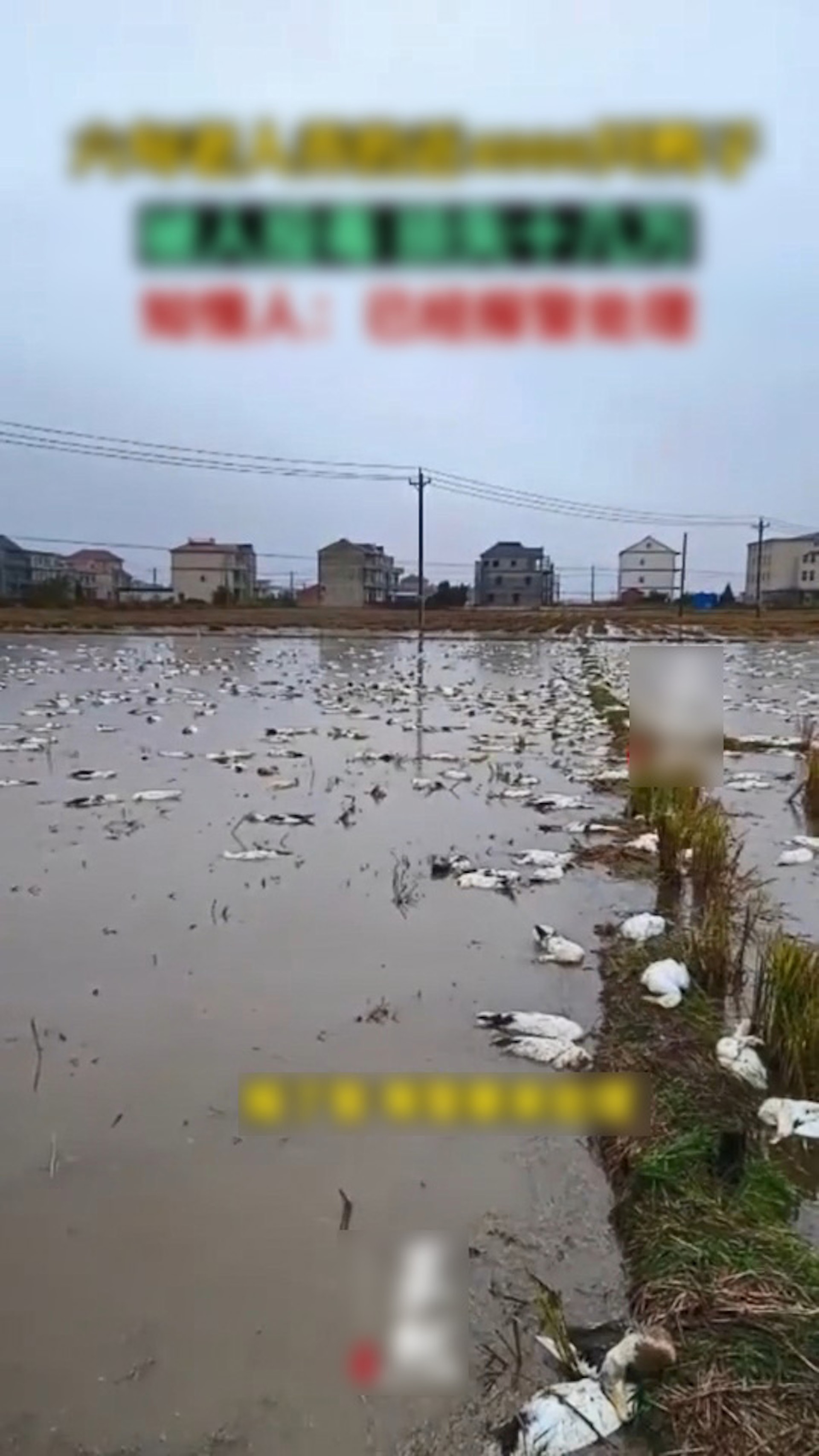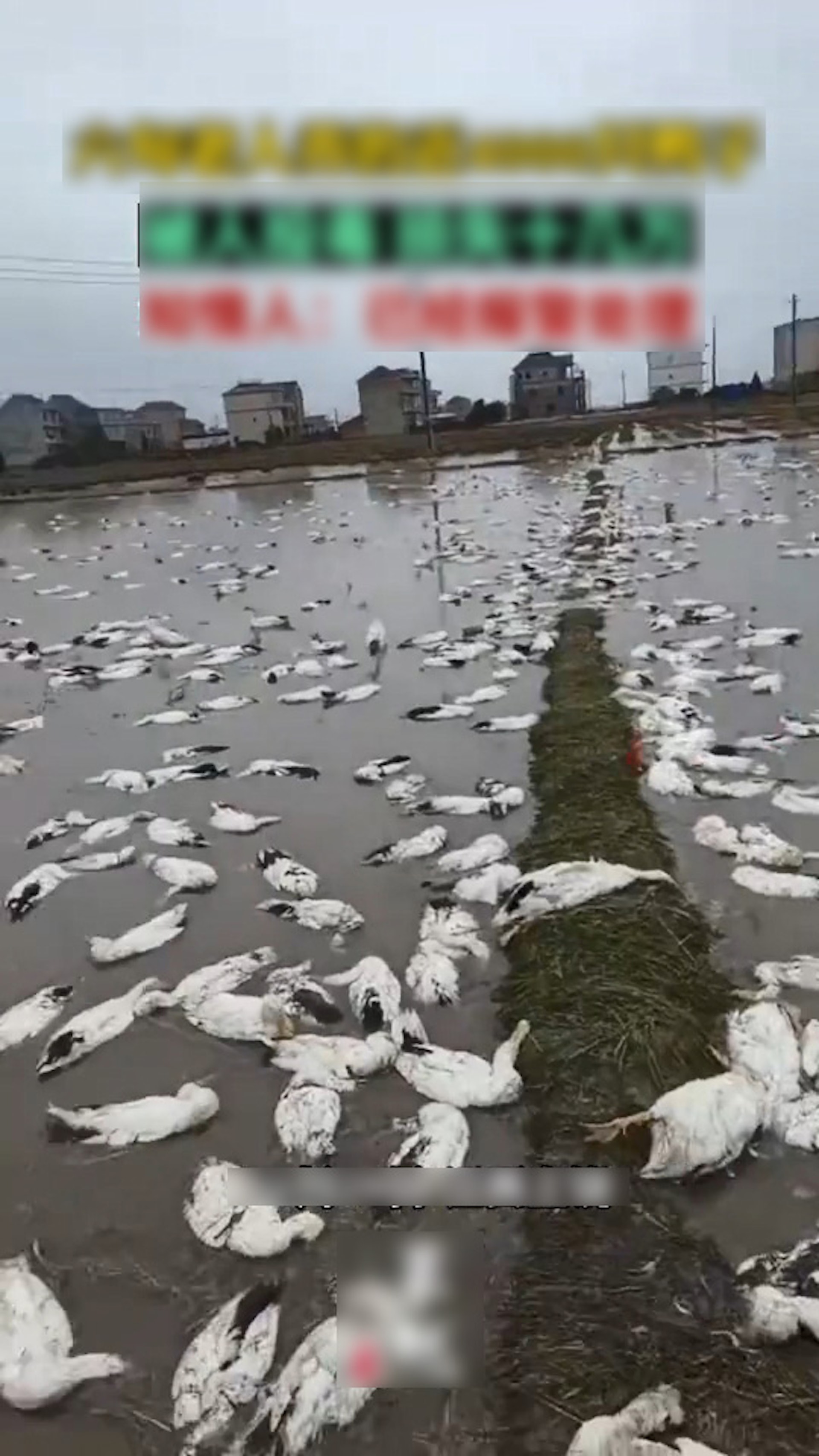 長者們養的鴨子有近5000隻被毒死,醒來時變成「鴨屍池」。(微博影片截圖)