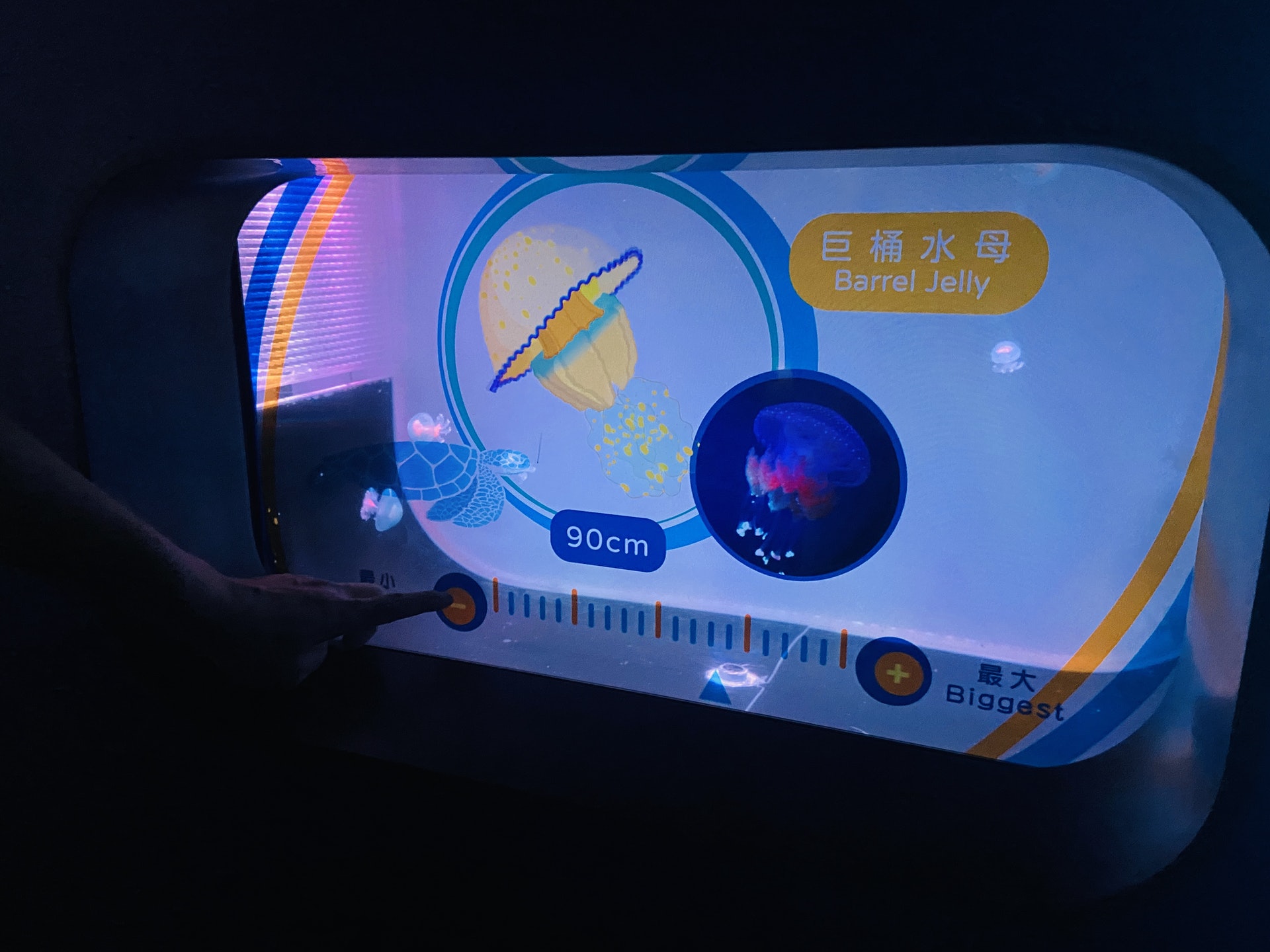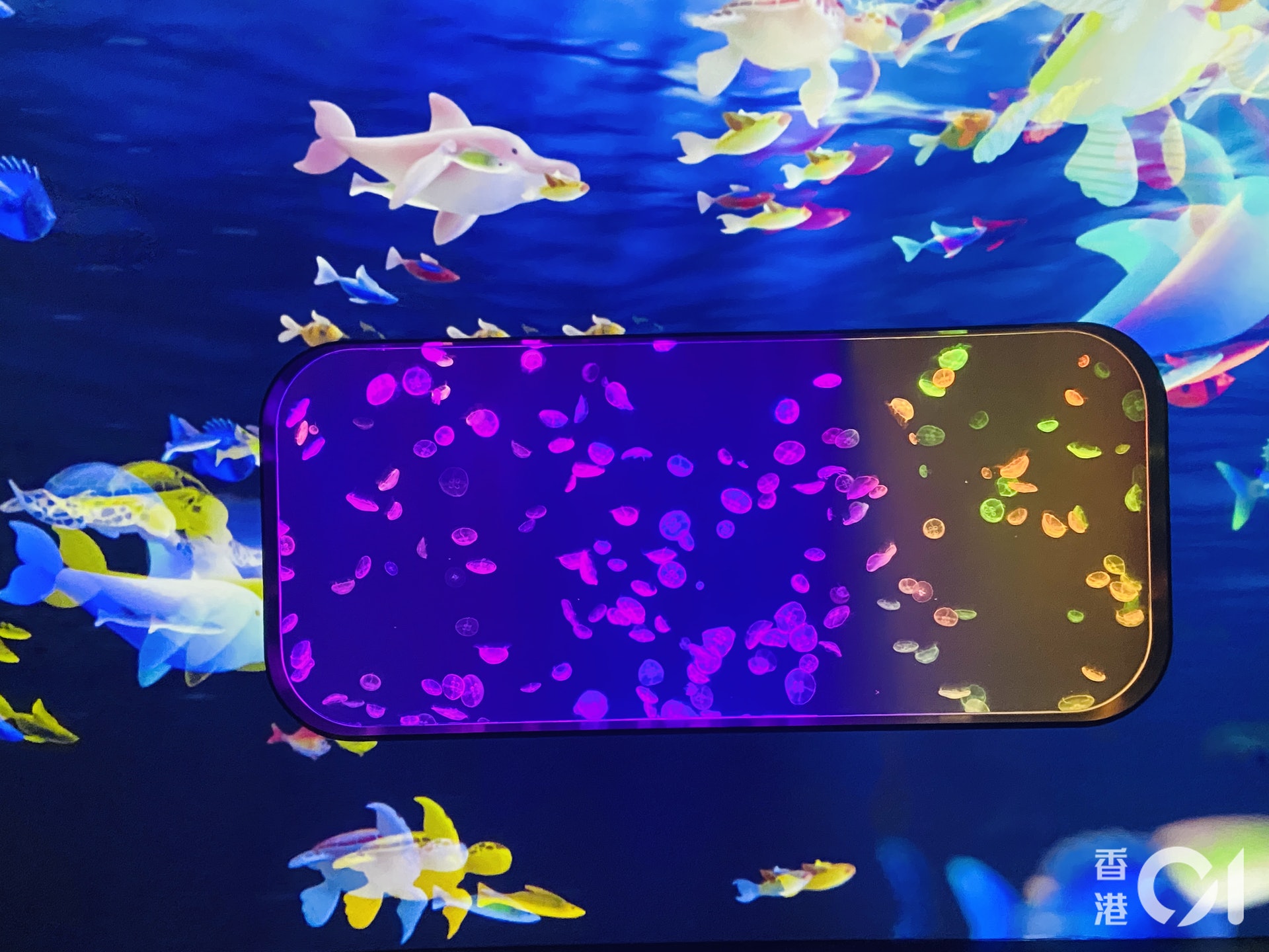 & O; D7 E4 r* b/ p. Z. P6 t+ @公仔箱論壇浩海立方 • 探游館以動畫配合真實的水母,教導小朋友有關海洋的知識。(余嘉文攝)